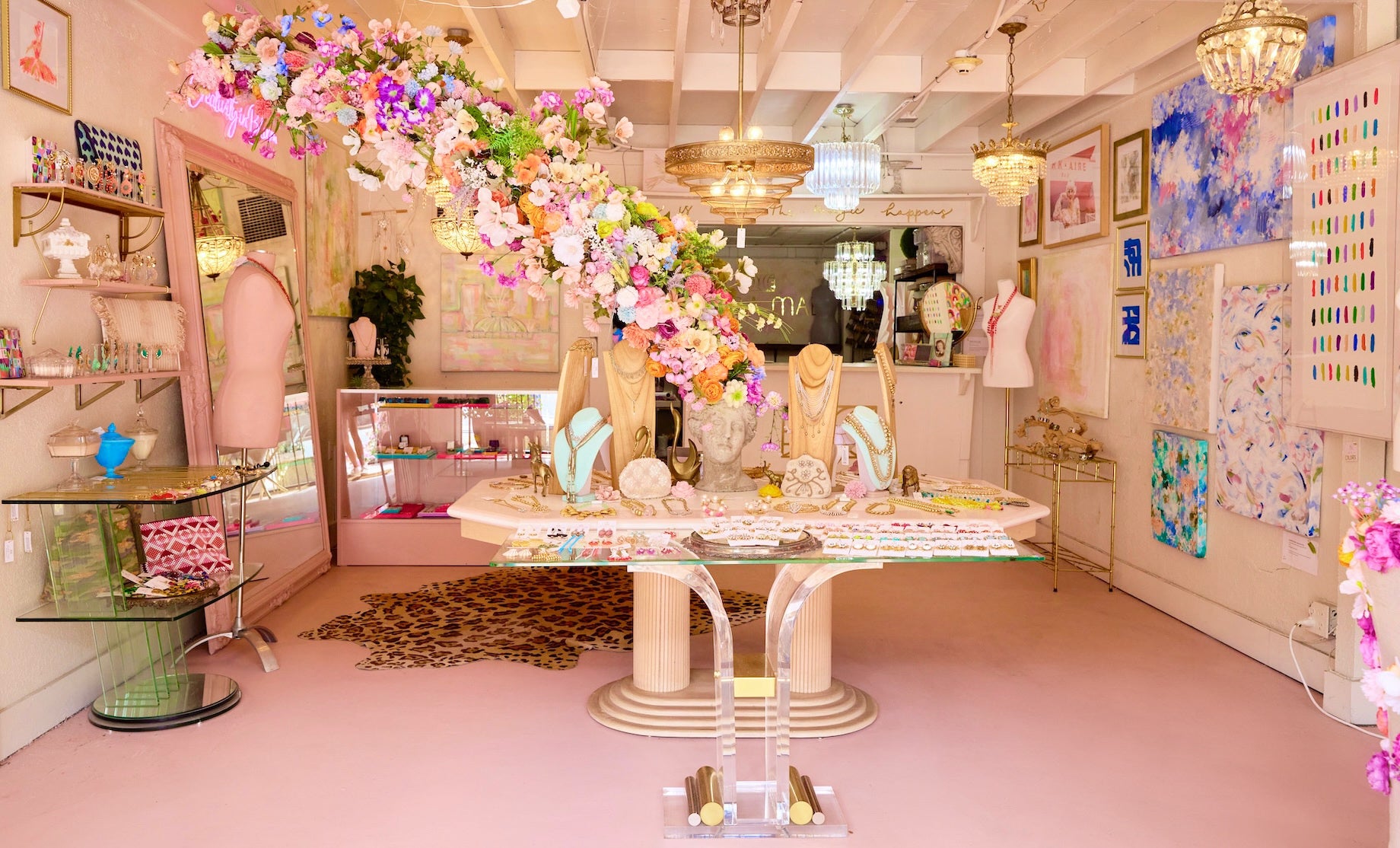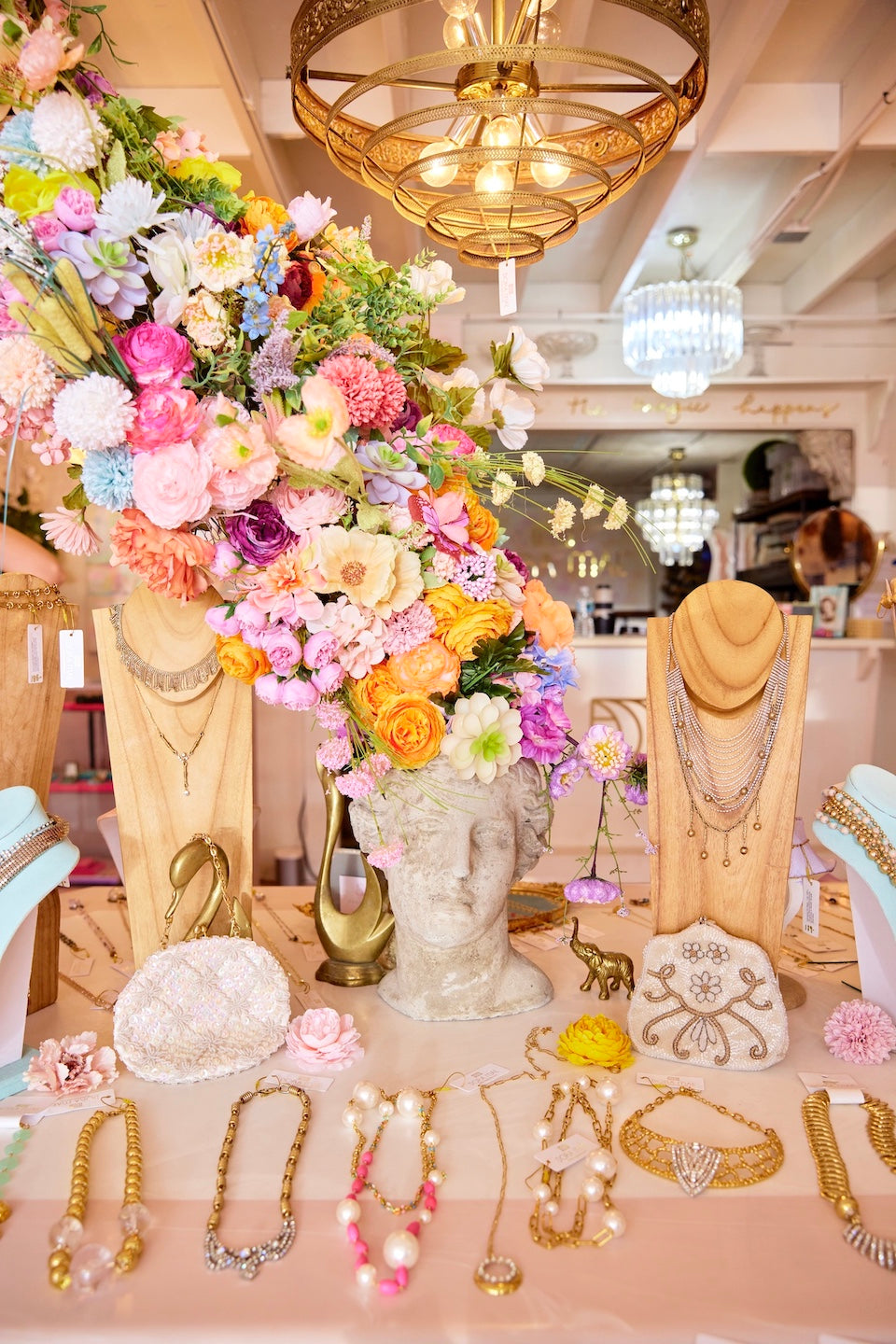 We'd love you to visit our deco pink jewelry box of sparkly baubles and blooms, where creativity is bursting around every corner. Our sparkly parlor of transformation and new life shares space with the beautiful mess of our maker’s studio, allowing our customers to feel connected to where the creative magic happens! We've created a warm, intimate space where your jewelry's journey is honored the moment you walk through the door. You'll experience our blend of technical expertise and heartfelt understanding that makes reimagining your treasures a joy. Come escape here into the colorful glow of all things girlie, gorgeous and glam!