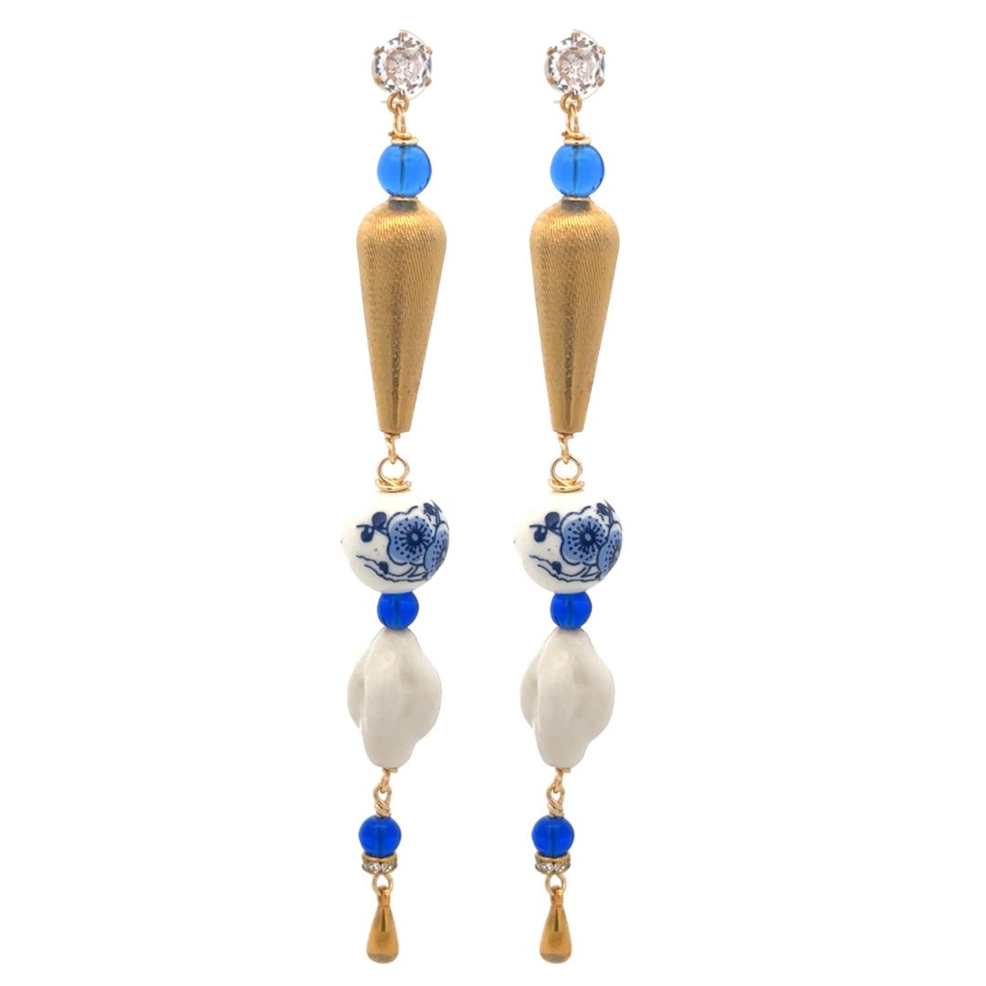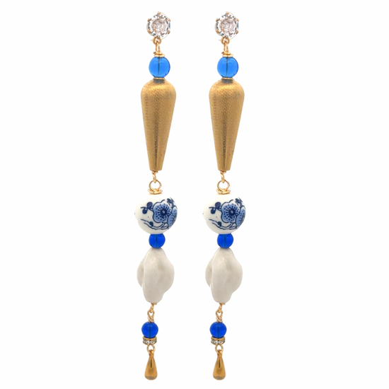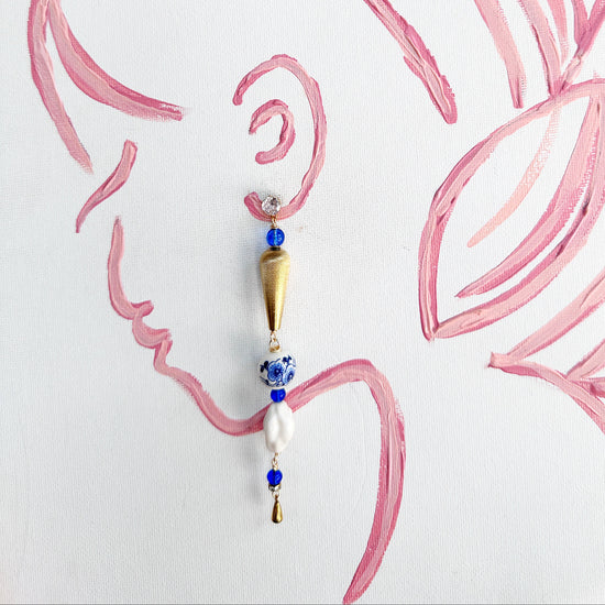 You love to milk every magical moment in your life, which is why you love these 1970's etched gold beads accented by white and blue midcentury beads!
