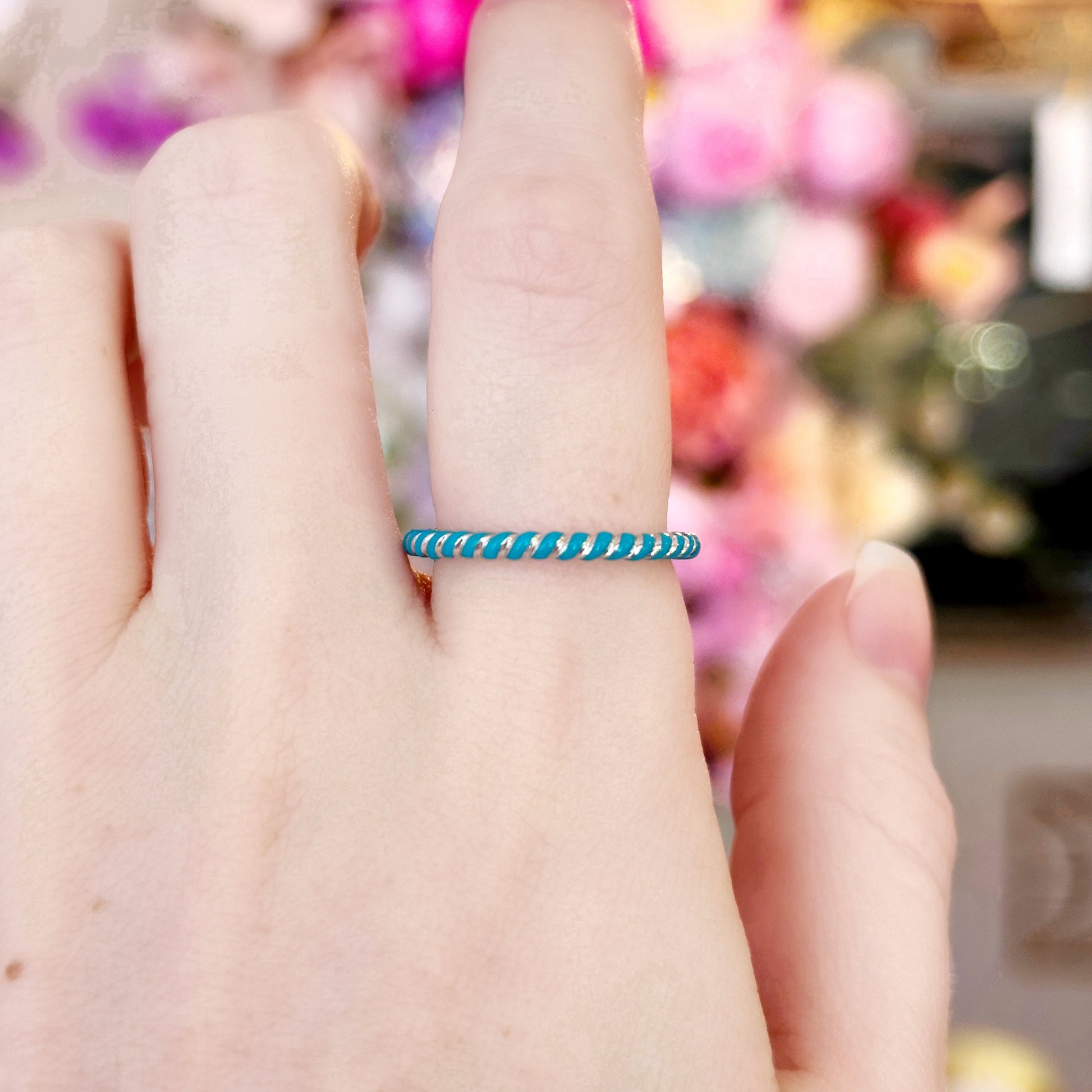 Casual Carats sterling silver and turquoise enamel twist eternity band. Mix and match these enamel bands to craft a stack that reflects your personal style!
