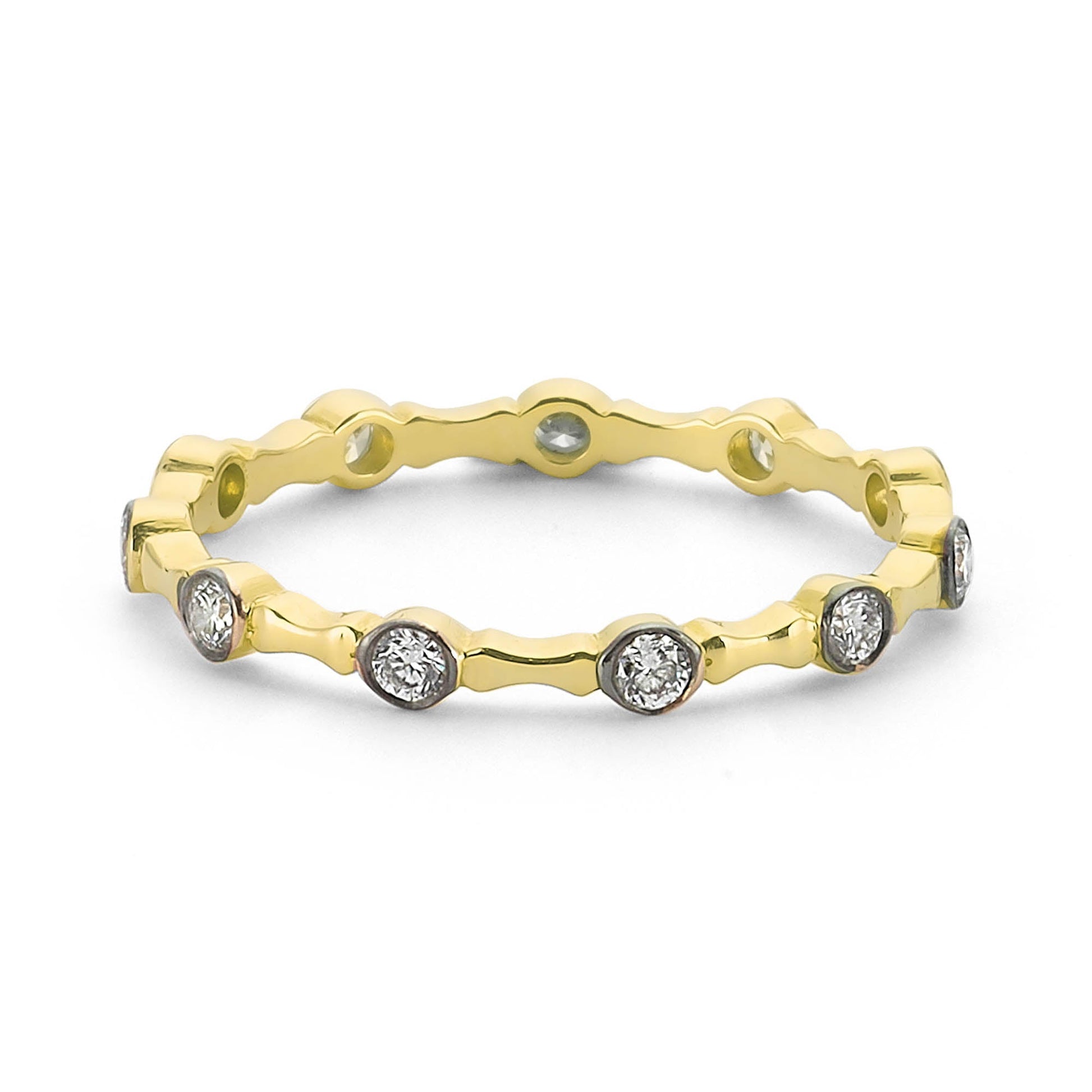 "Veronica" in her classic form is a 14k yellow gold ring (1.63 grams) featuring 0.090 carats of F color, SI1 clarity diamonds. Delicate, subtle, and perfect for adding a touch of sparkle to your everyday look or stacking with other rings.