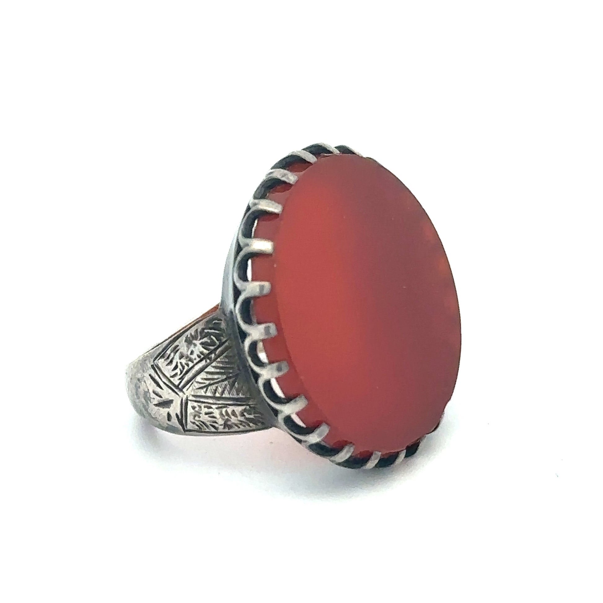 It’s your courage and your audacity to believe in yourself, despite the doubt or darkness around you. It’s in that spirit that you wear this 1970's Sterling Silver and Carnelian Cocktail Ring.