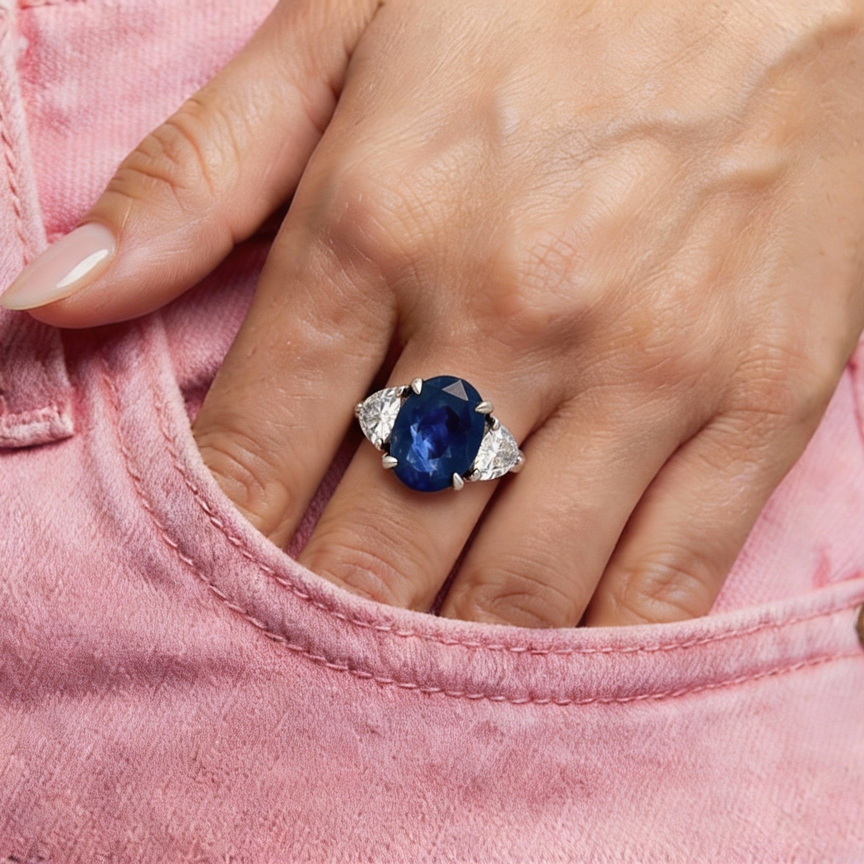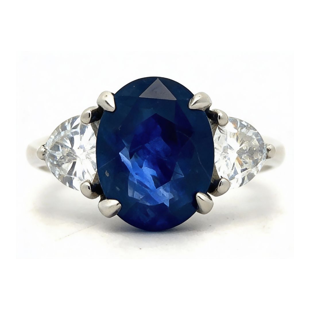 Shown here is a vintage platinum and 3.85 ct Sapphire and 0.85 ct F color vs2 diamonds.