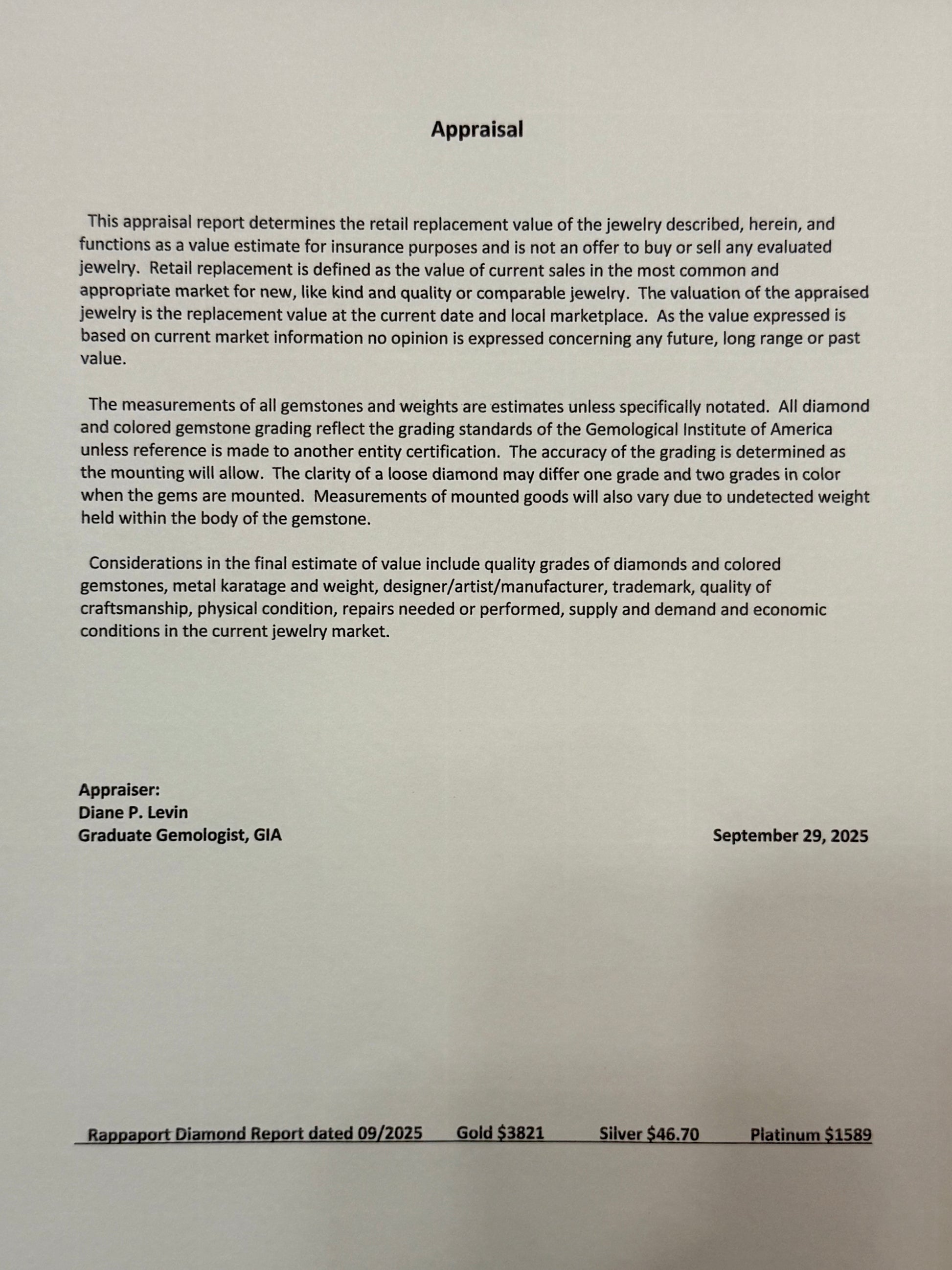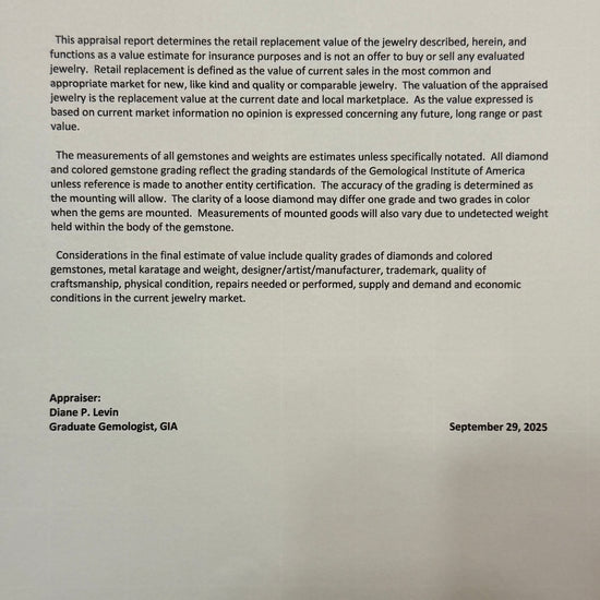 For pieces over $5000, we offer independent appraisals so you can be confident of the authenticity of your purchase as well as the retail replacement value for insurance purposes!