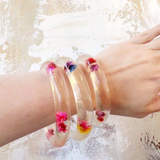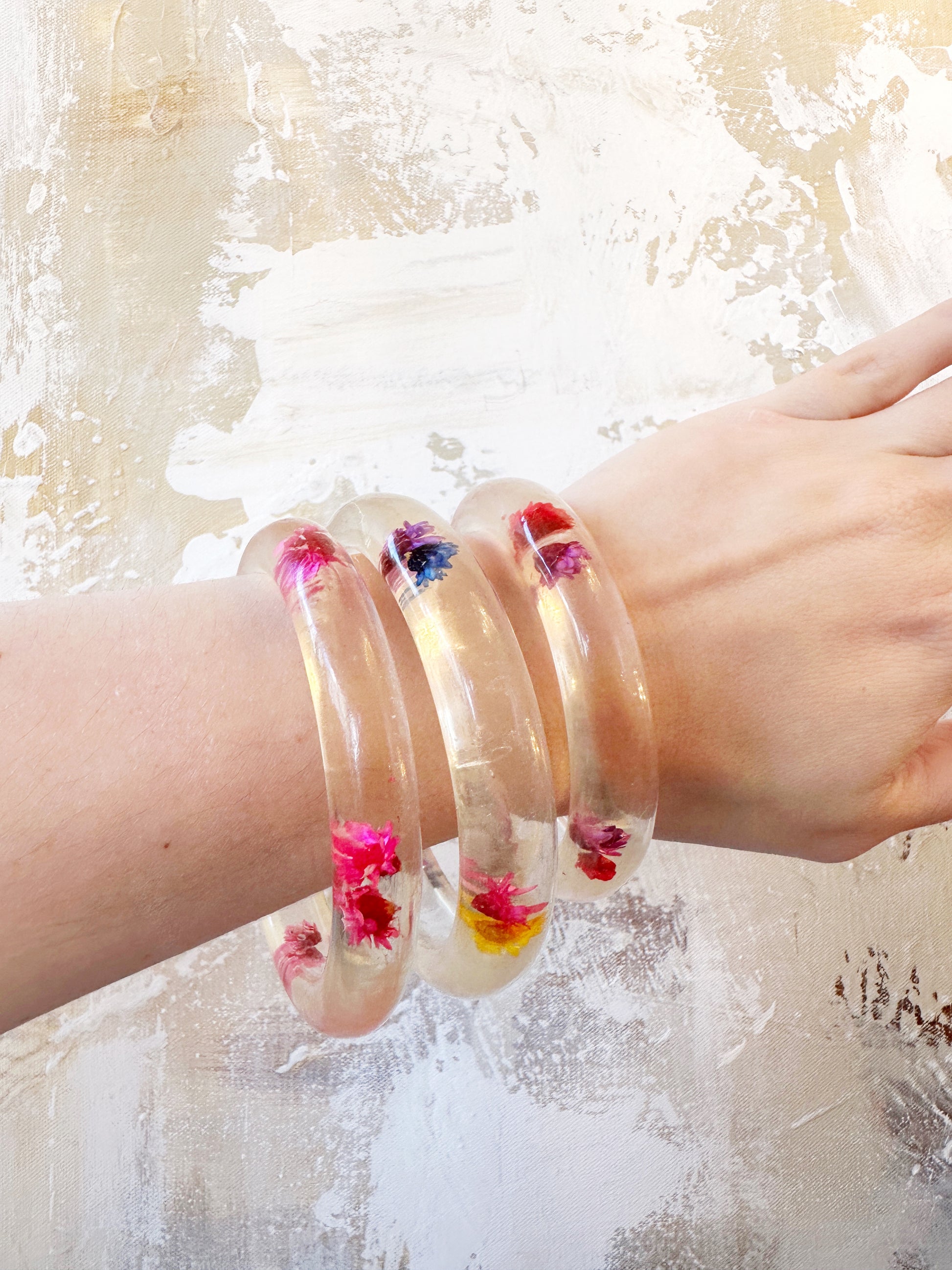 Your outfit is your Aura. Your ensemble is made of energy. You are dressed in Undeniable Alreadyness. And you top it off with this beautiful 1970’s lucite bracelet with multi-colored flower accents!