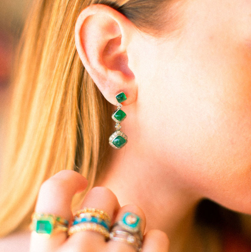 Your energy is contagious, bringing so much light and life into the world! You are the perfect soul to wear these beautiful handmade platinum sugarloaf emerald and diamond earrings!