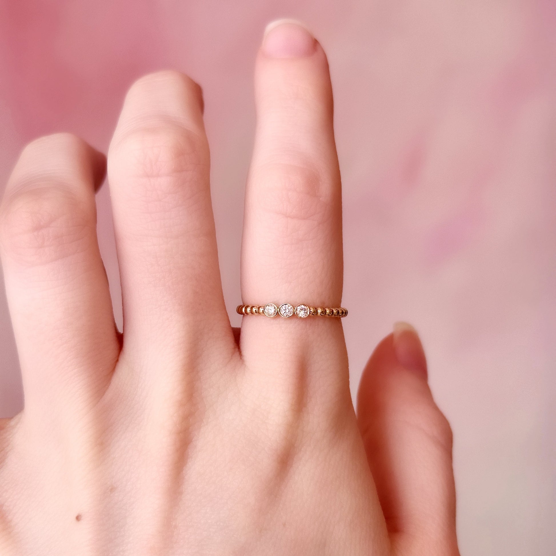 A 14k yellow gold ring featuring 0.09 total carat weight of natural diamonds. A delicate design that wears beautifully on its own or stacked with other rings.
