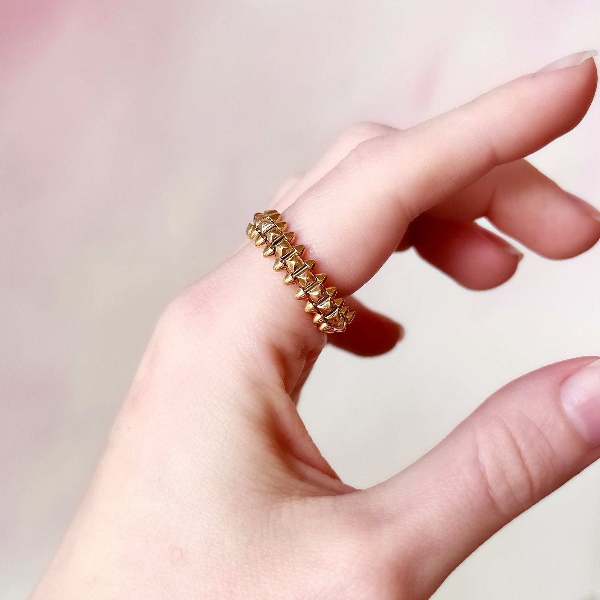 A genuine Clash de Cartier ring, medium model, crafted in 18k yellow gold and weighing 8.7 grams. A distinctive design that wears beautifully on its own or stacked with other rings!