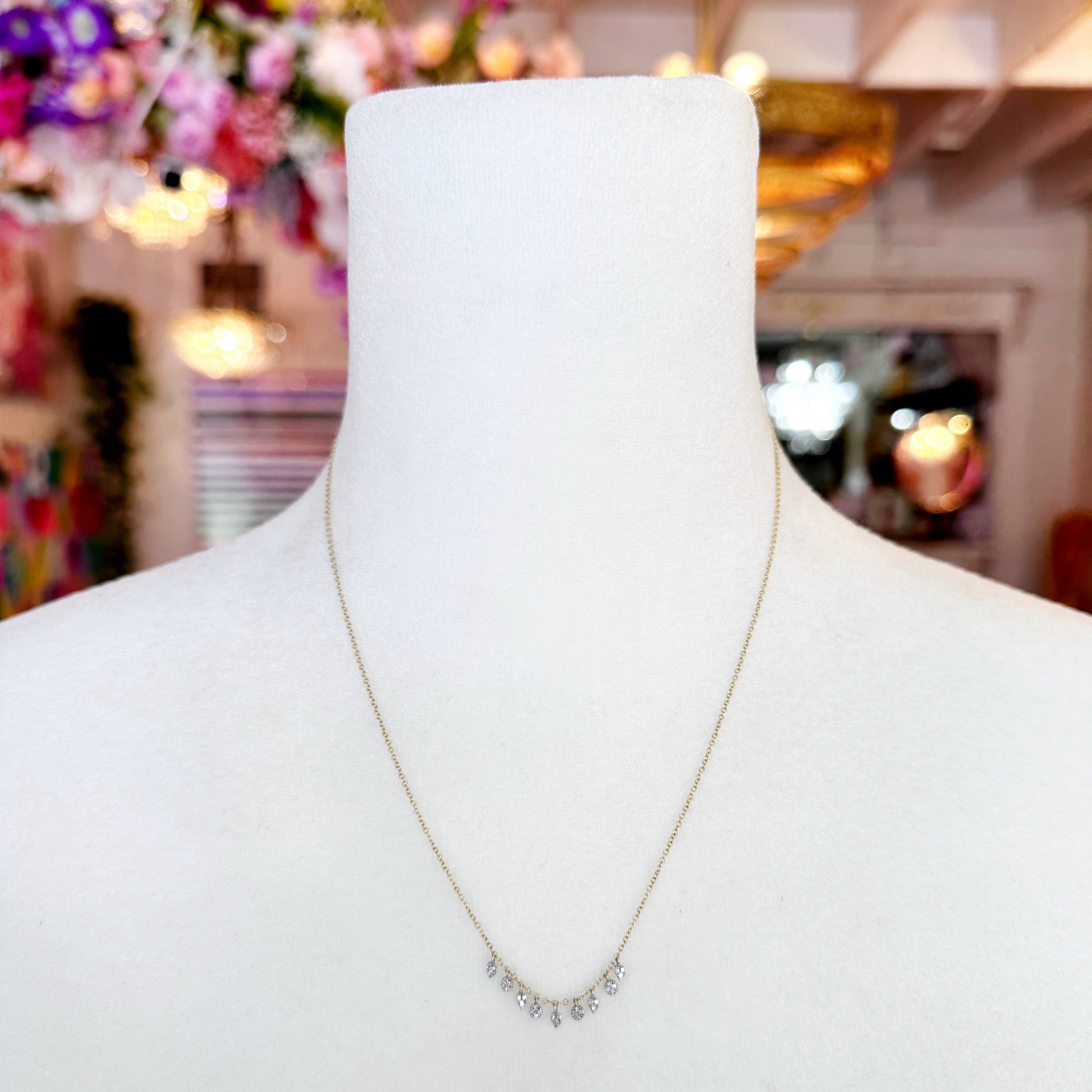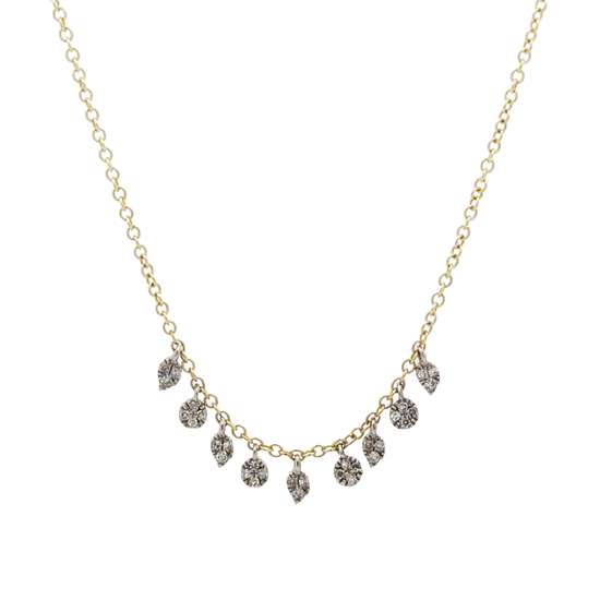 A 14k yellow and white gold necklace accented with 0.08 carats of natural diamonds. it’s perfect for adding a hint of sparkle on its own or layering for a chic, stacked look!