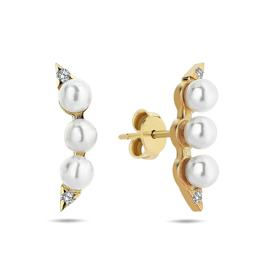 A pair of 14k yellow gold earrings (1.15 grams) featuring delicate pearls accented with 0.040 carats of F color, SI1 clarity diamonds. Elegant, timeless, and perfect for adding a subtle sparkle to your everyday look or layering with other earrings.