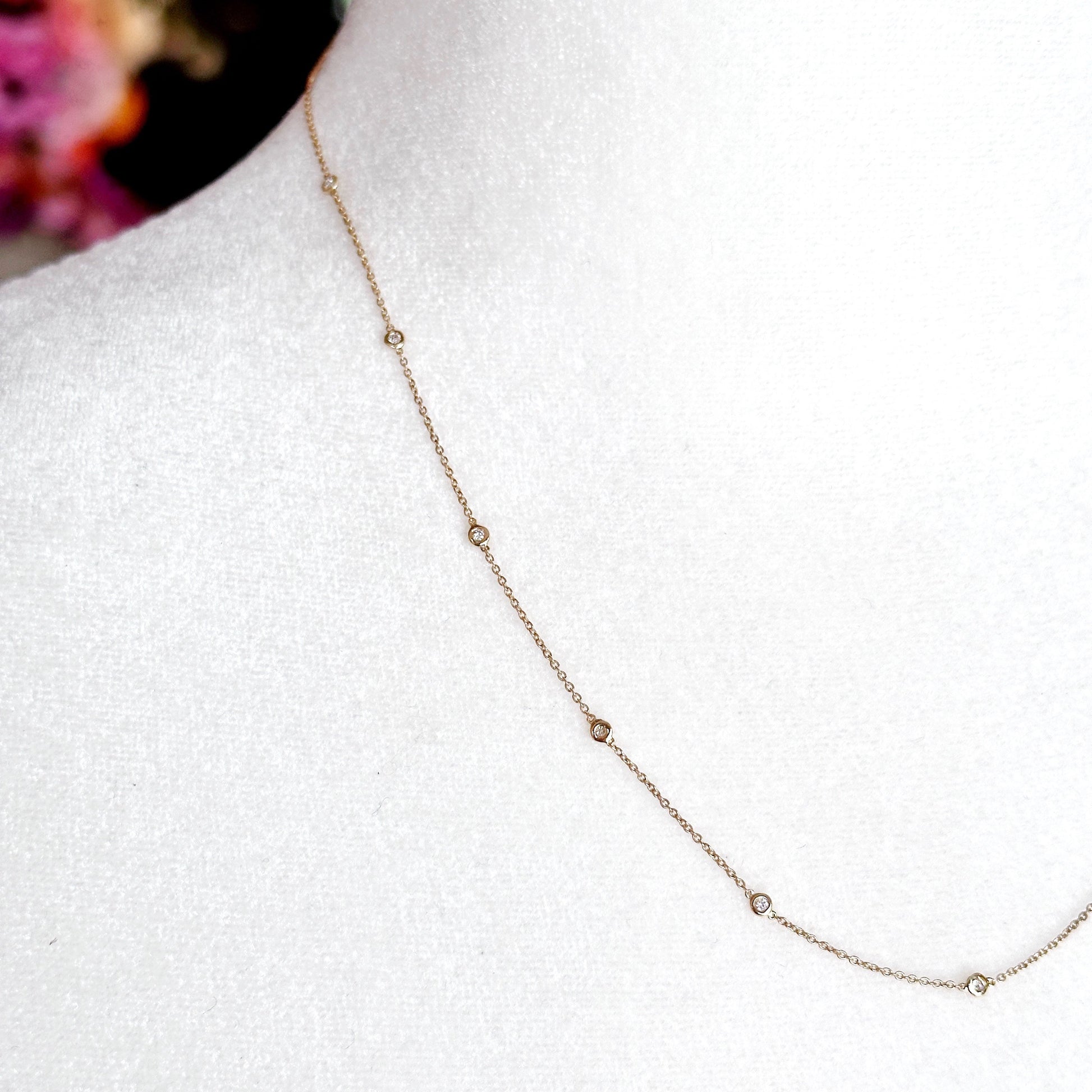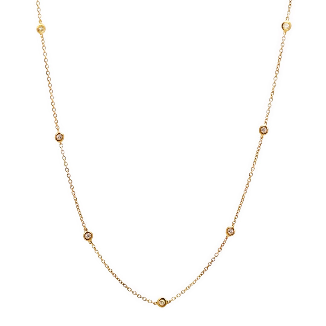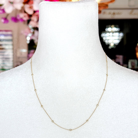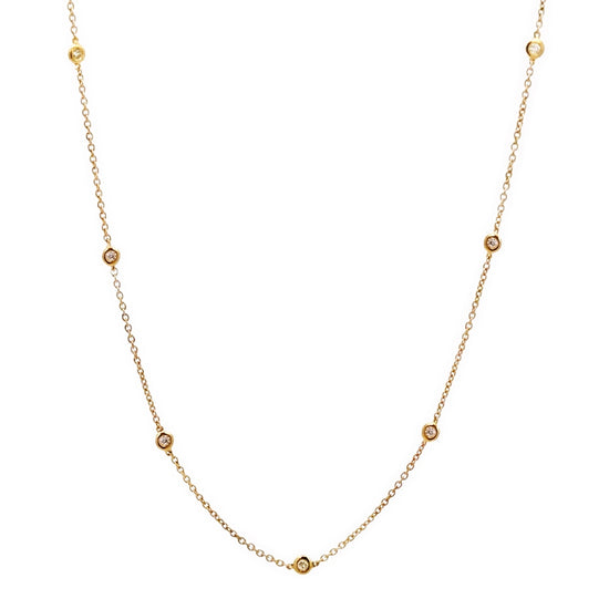Add a touch of sparkle to any outfit with this 14k yellow gold station necklace! Featuring a 16–18” adjustable chain and 0.16 carats of natural diamonds, it’s perfect for layering or wearing on its own.