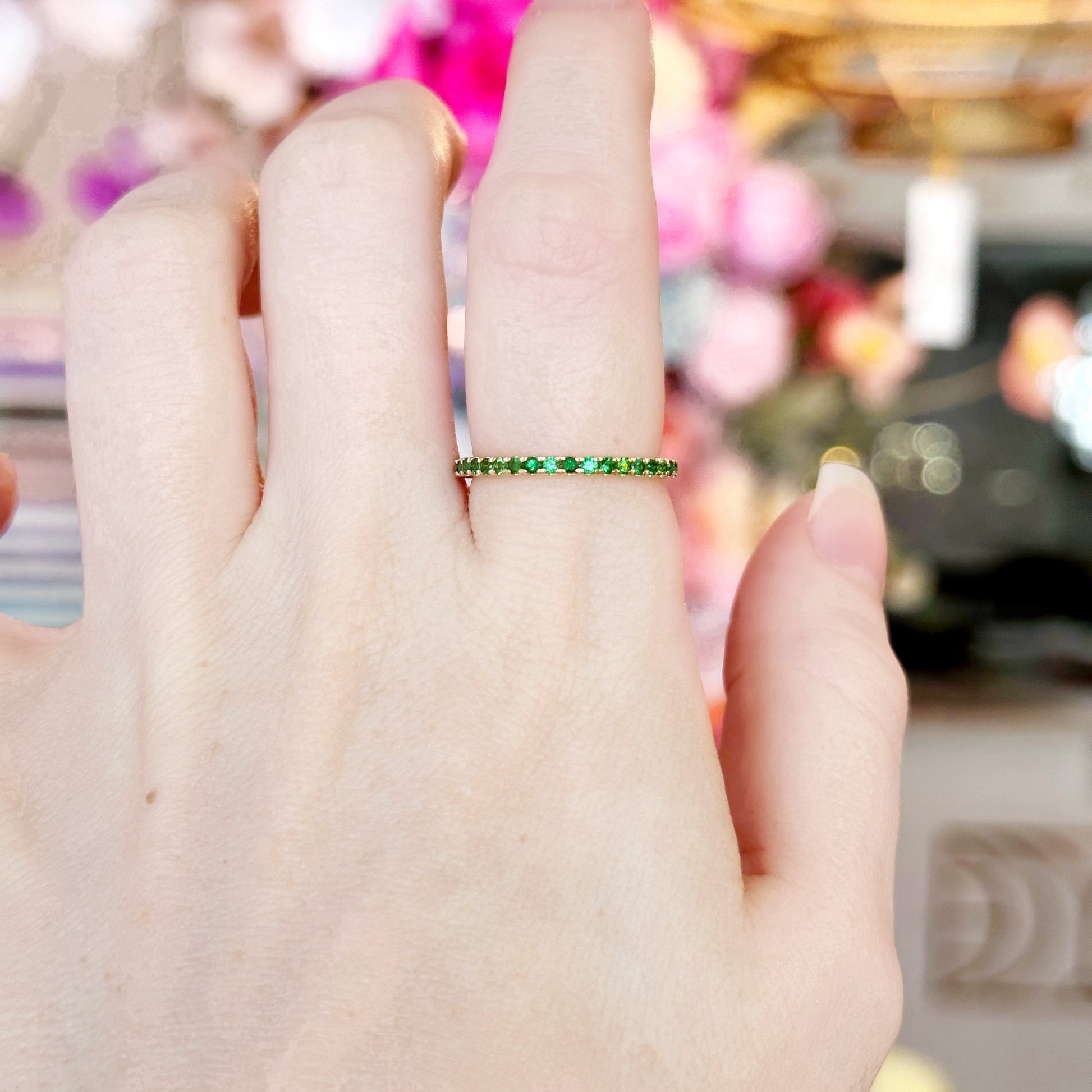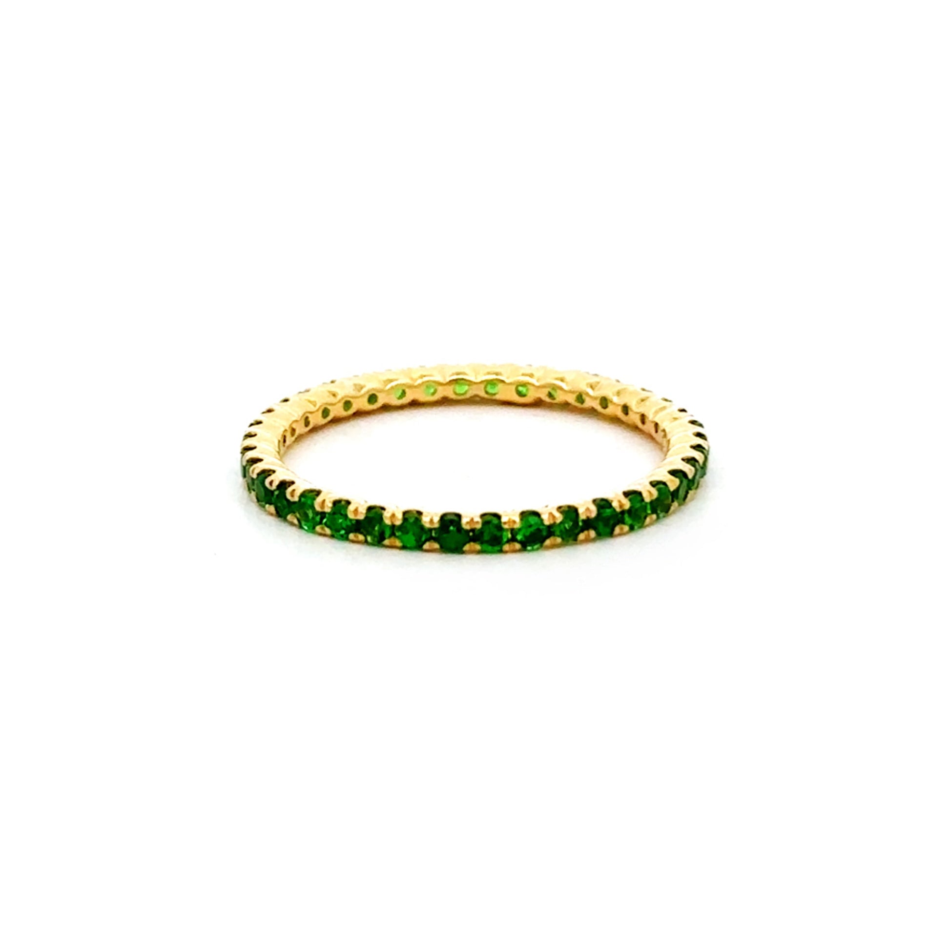 "Lanie" in her classic form is a 0.77 carat total weight Tsavorite garnet ring is set in 14k yellow gold. Vivid, rare, and full of life, Tsavorite offers an unexpected twist on classic color.