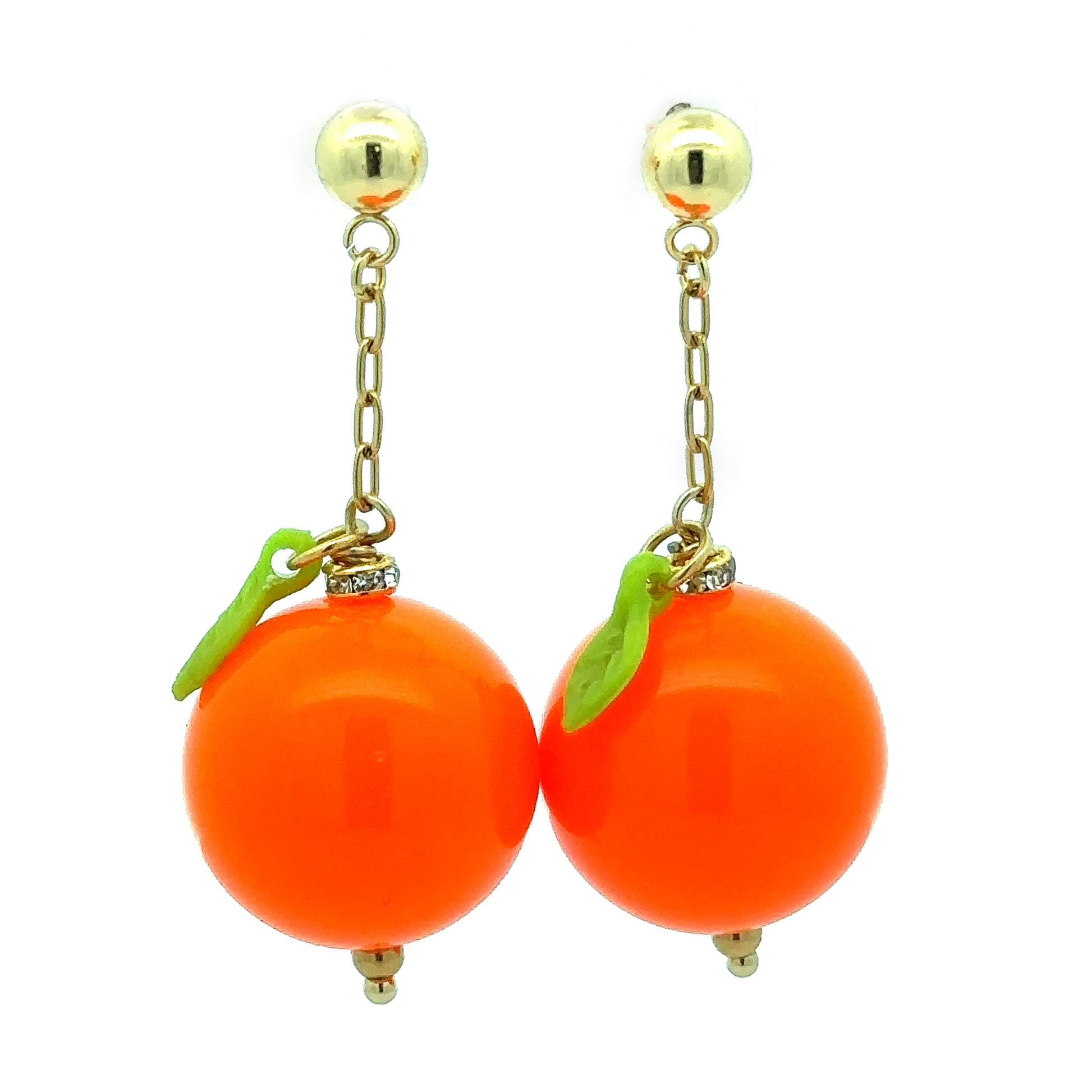 These vintage orange beads accented with green leaf charms are the perfect delicate and colorful addition to your wardrobe.