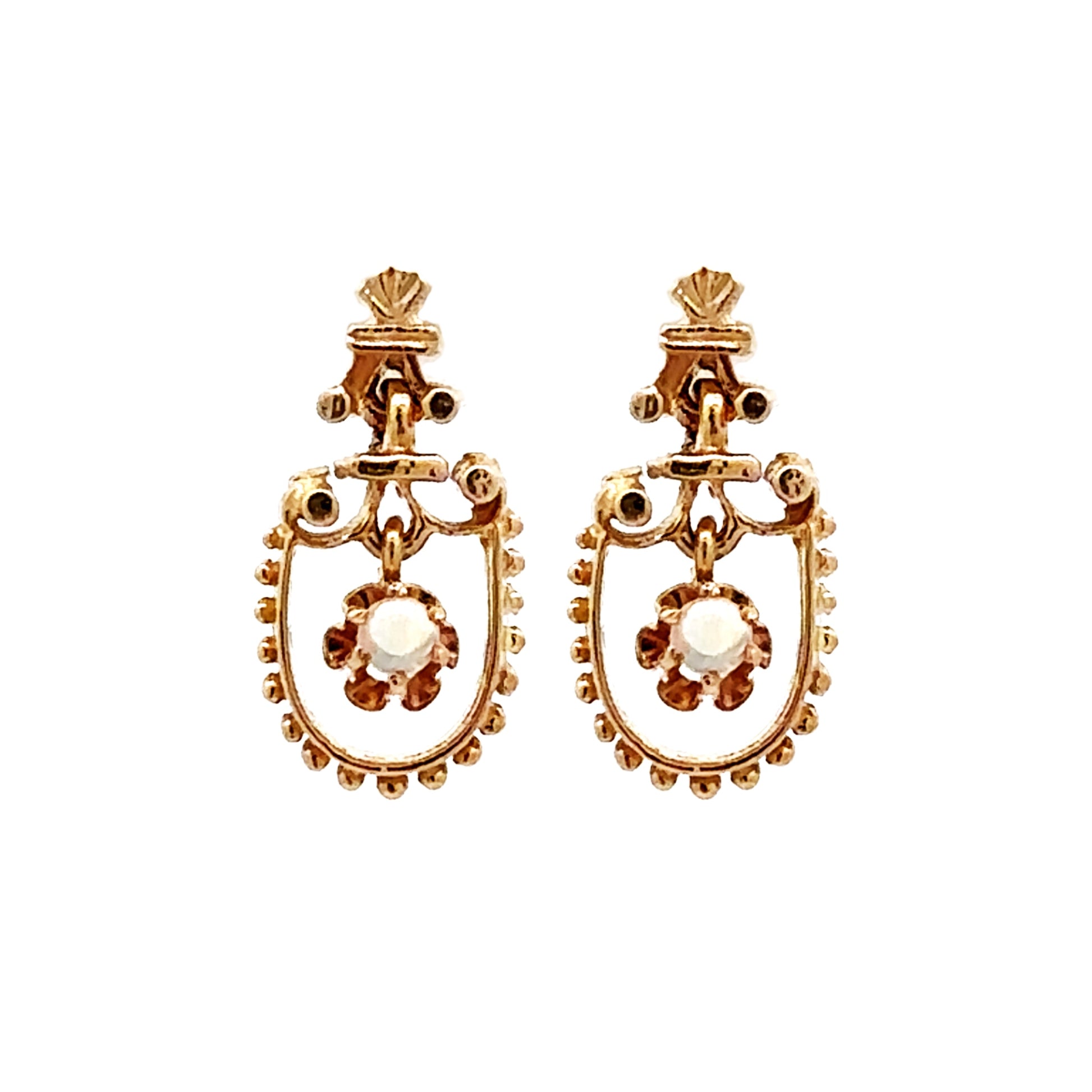 Early 1900's Victorian post earrings, handmade. 14k gold, 2.05 grams featuring opals.
