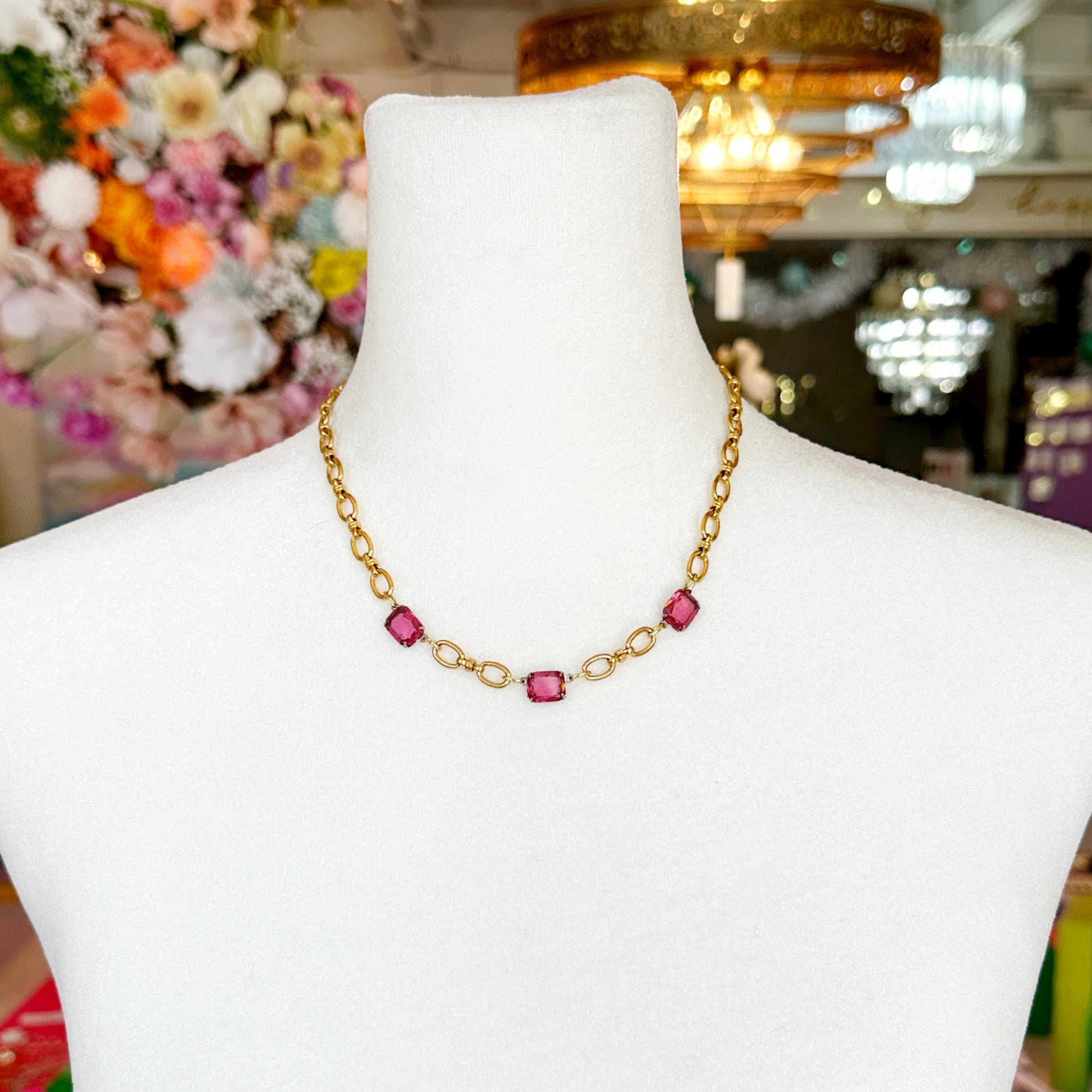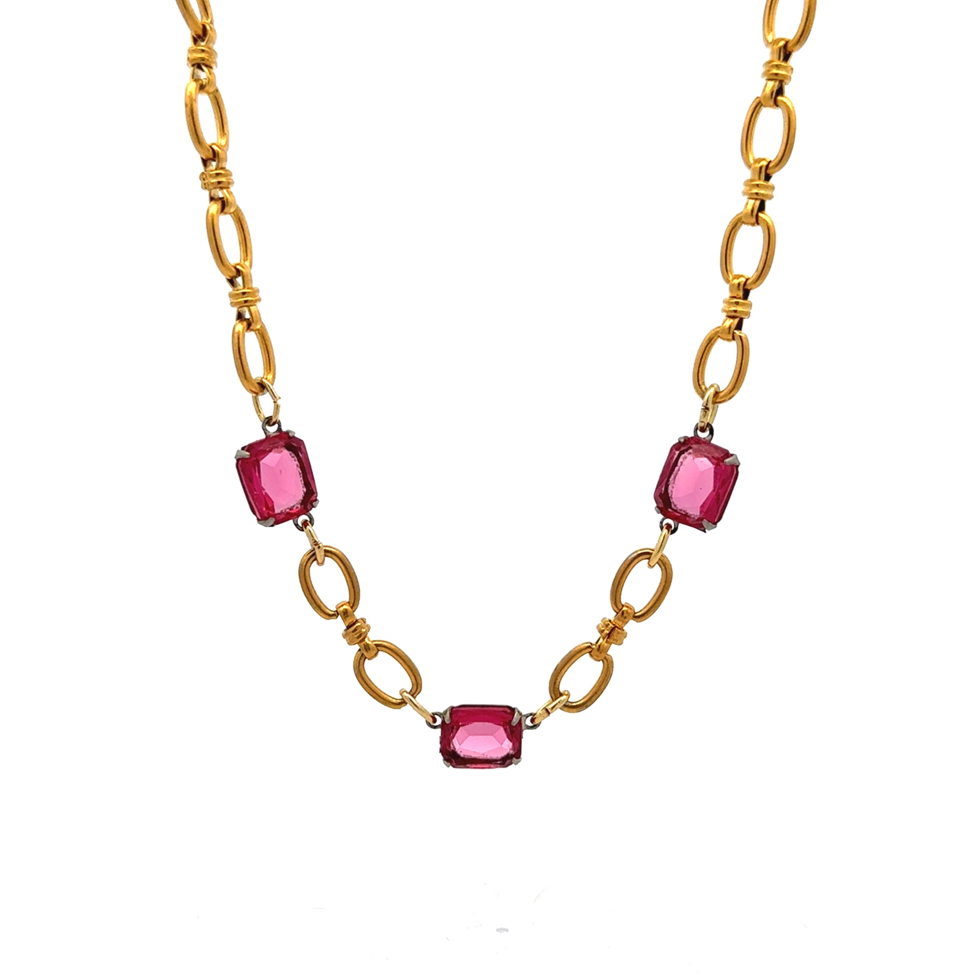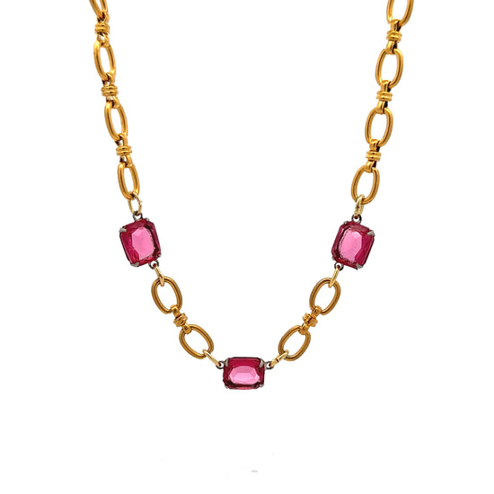 That sparkle in your eye is only matched by the sparkle in this 1920's fuchsia paste rhinestone station necklace!