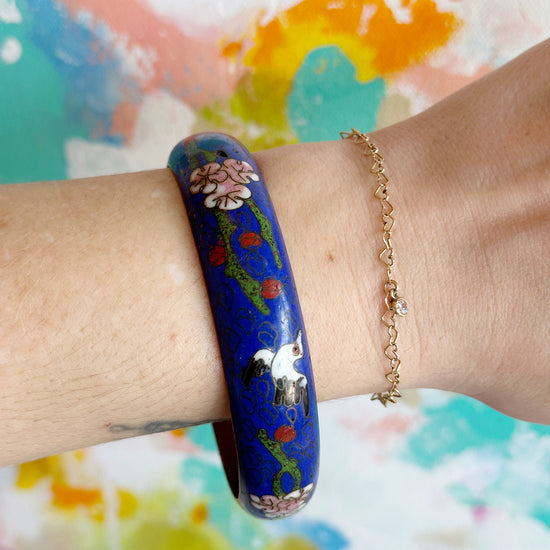 You aren’t trying to “fit in” with this bracelet…but neither are you trying to “stand out!” Instead you are “rising up” in your beautiful bohemian soul! Layer this 1960's floral enamel bangle with other pieces or wear it on it’s own! Dress it up with heels or dress it down with a white tee!