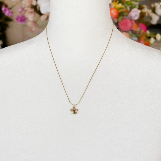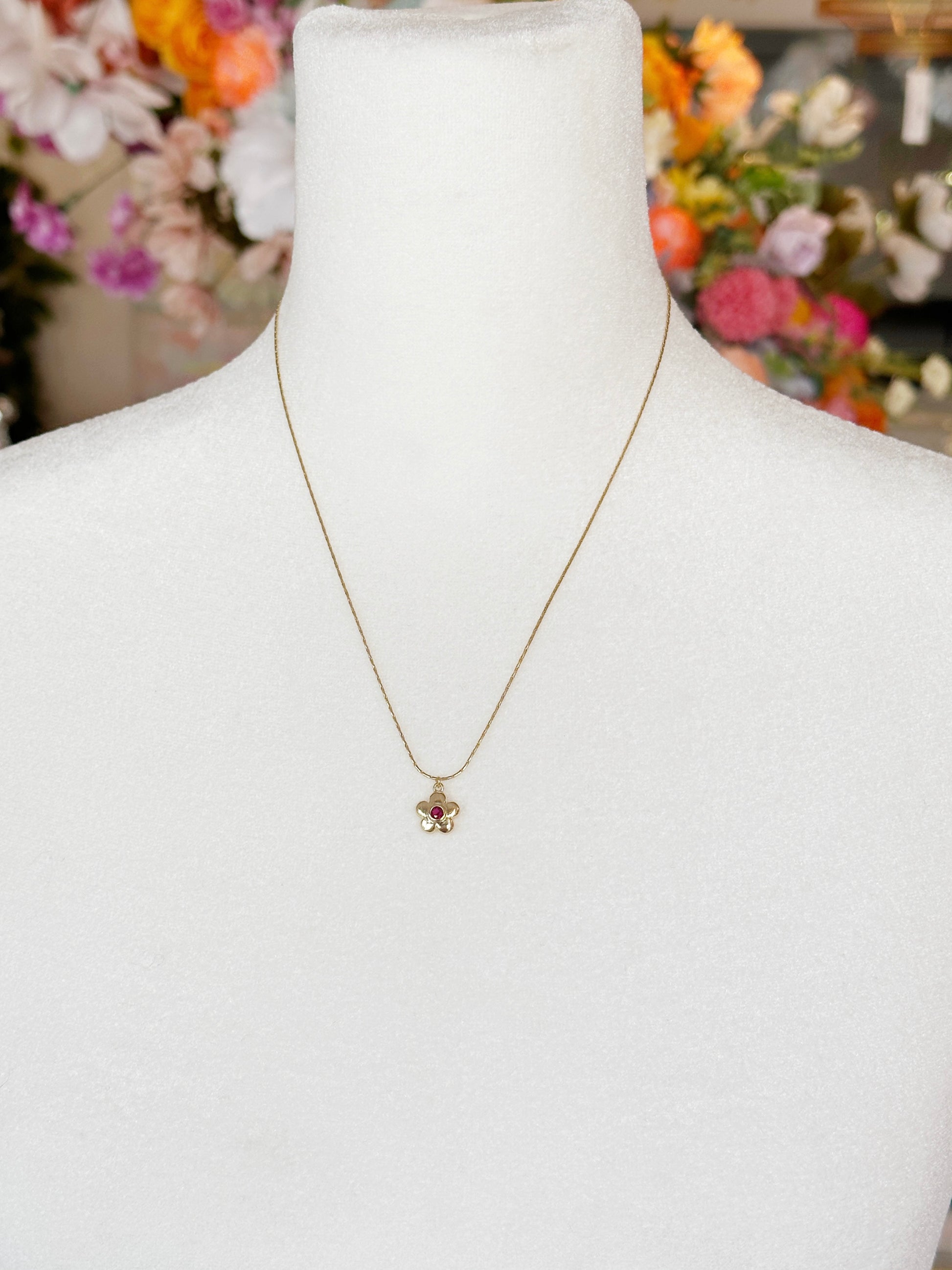 Your quiet courage becomes you. You quietly cultivate your soul AND courageously create your reality. Just like this glass stone in a stainless steel flower hung from gold snake chain, you are simultaneously soft and strong.