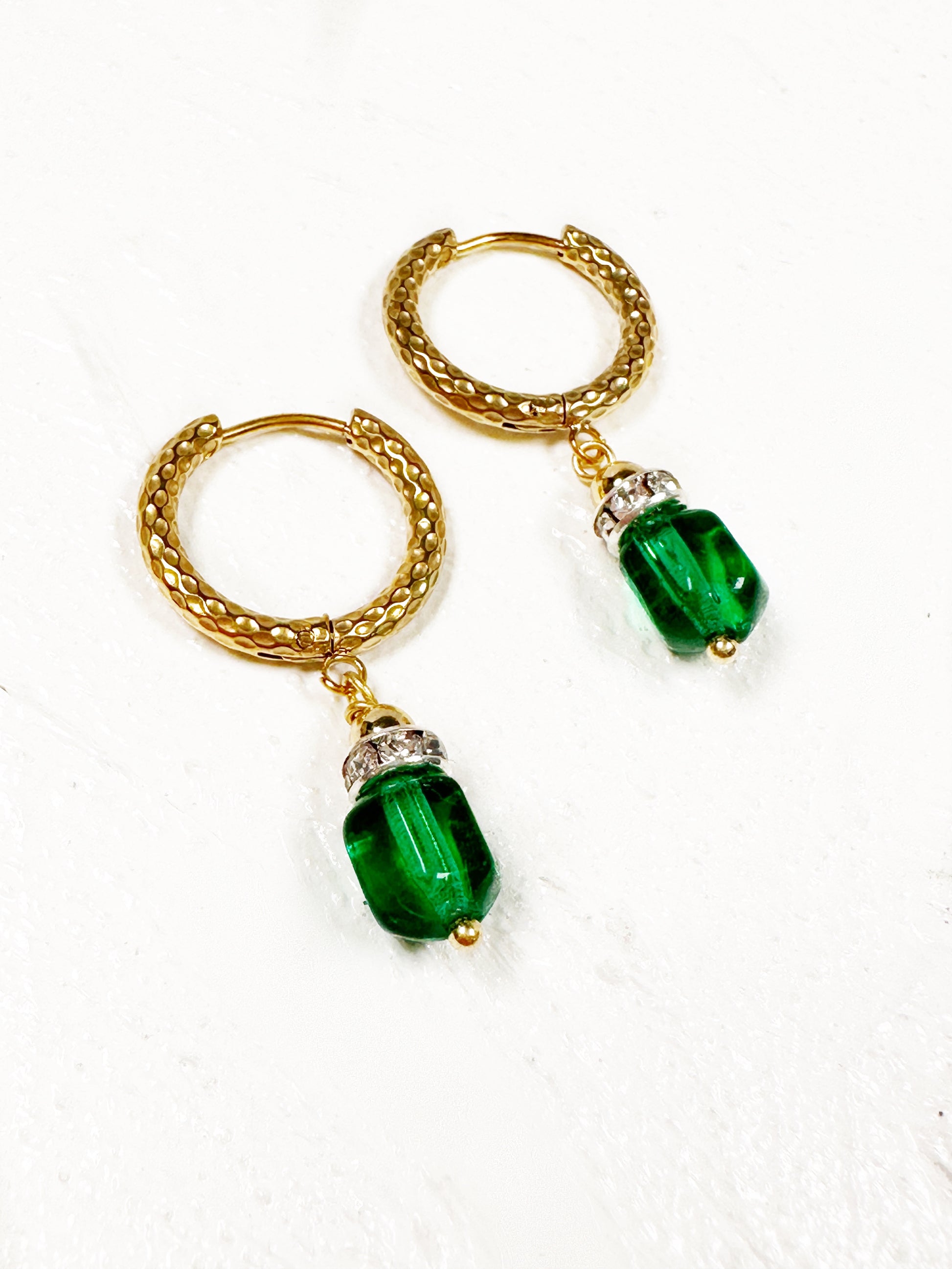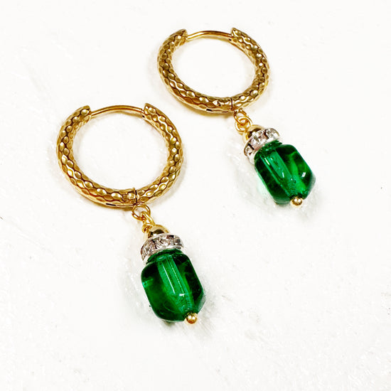 Your quiet courage becomes you. You quietly cultivate your soul AND courageously create your reality. Just like these vintage green beads hung from tarnish free, textured hoops, you are simultaneously soft and strong.