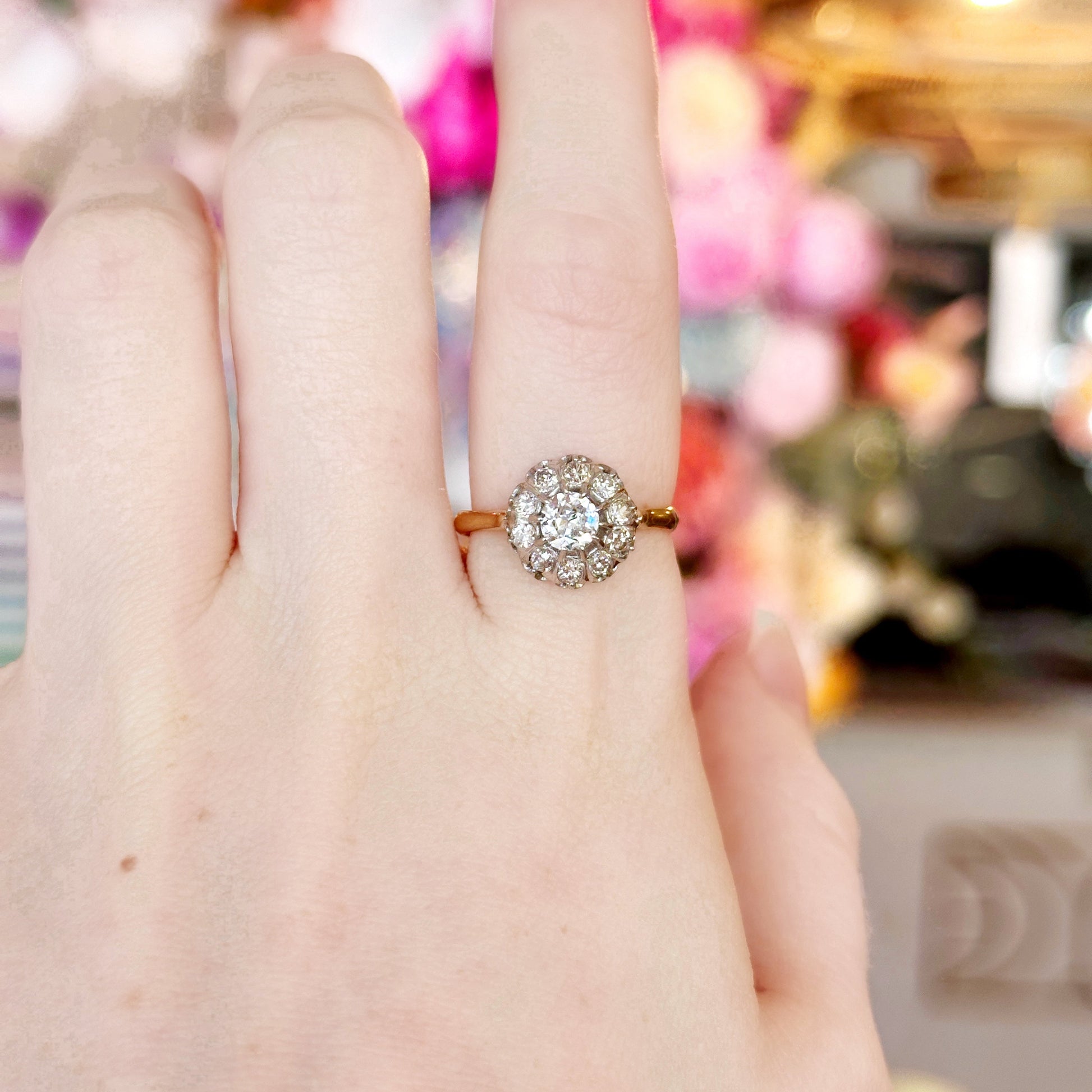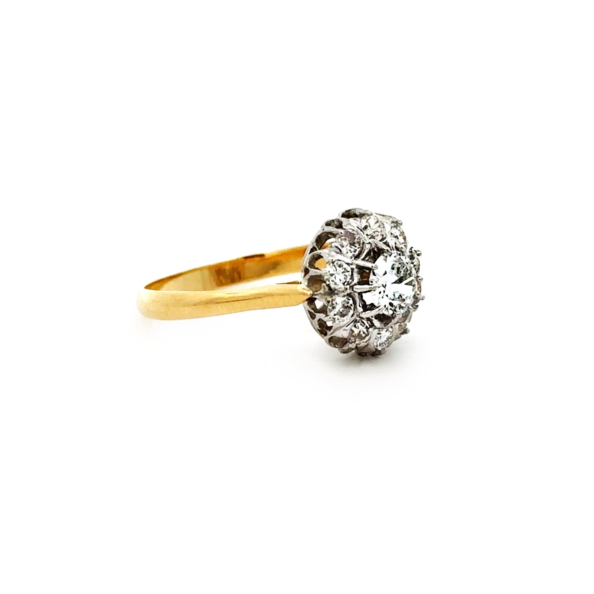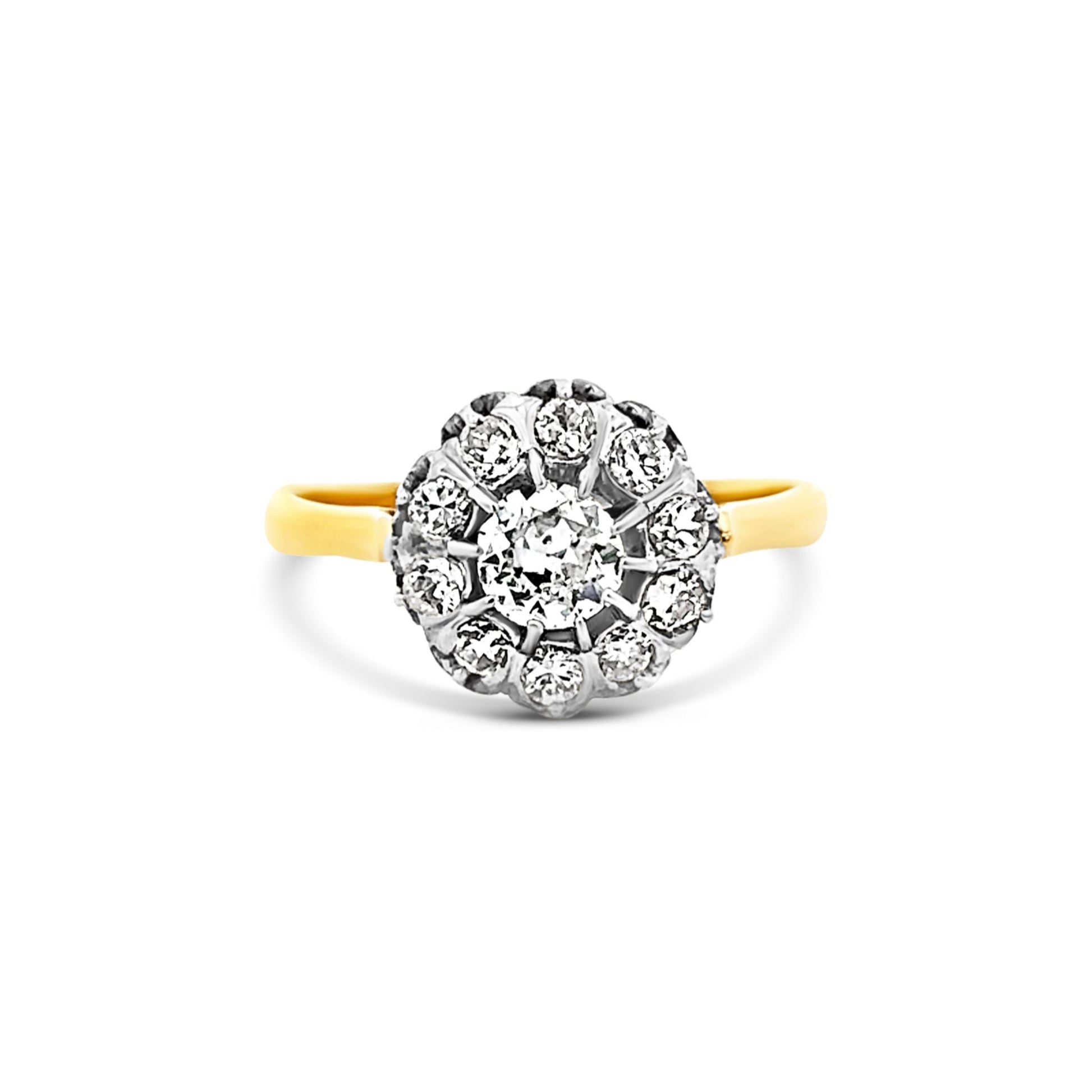 A 1900s Victorian-era ring crafted in rich 18k yellow gold and weighing 2.80 grams, featuring 1.00 total carat weightof sparkling old mine cut diamonds. With its softly rounded stones and antique charm, this piece carries the elegance of a bygone era in every facet.