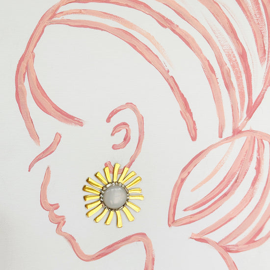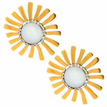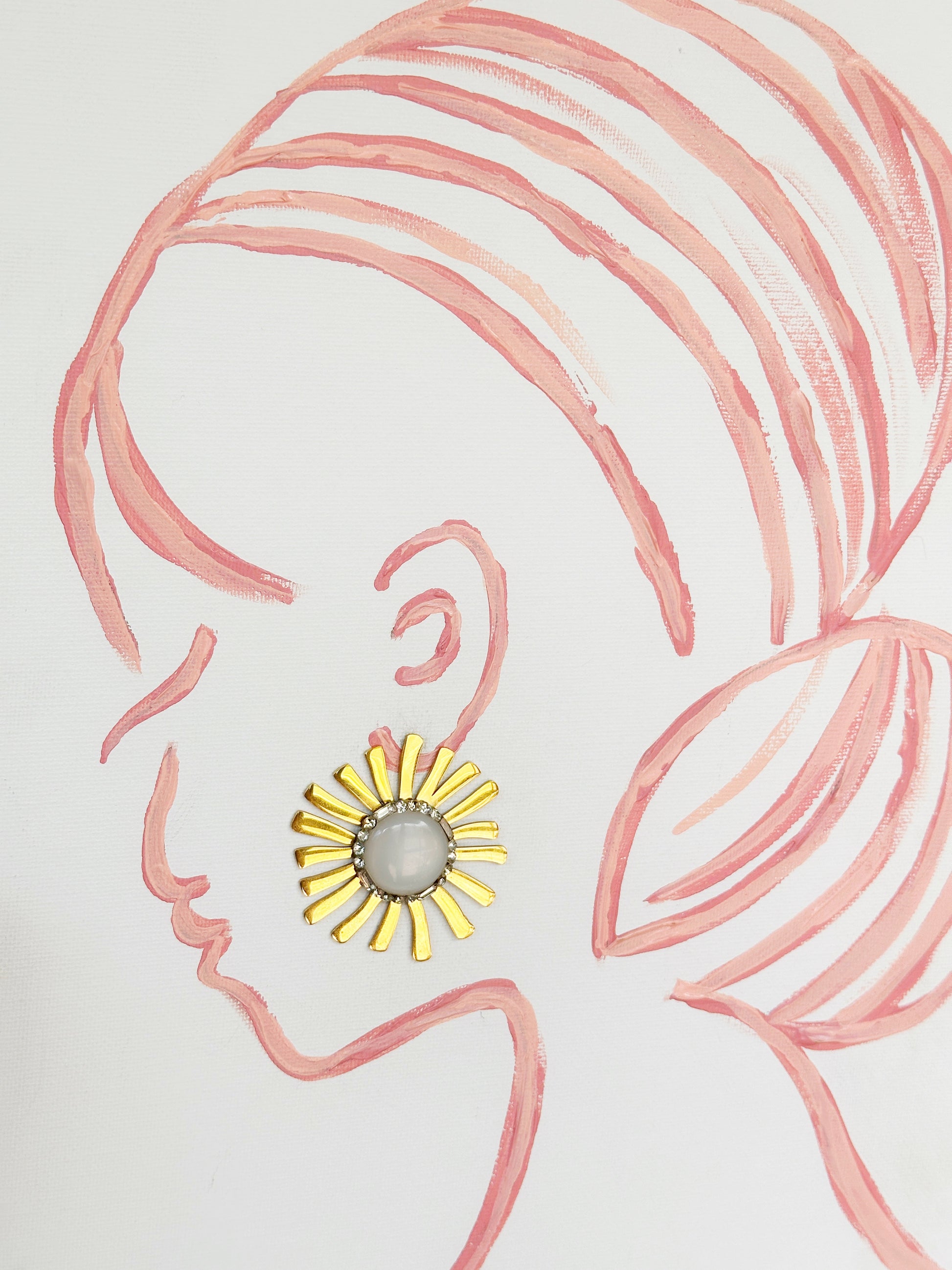 Follow the LIGHT…and the LIGHT HEARTED! Let your accessories be full of bright and abundant PLAY and POSSIBILITY! We have created custom, lightweight, tarnish-free suns as the perfect base for each curated mid-century vintage centerpiece. We created these earrings as an opportunity for you vibrant souls to be BOLD, to be LIGHT, to be YOU and SHINE BRIGHT!