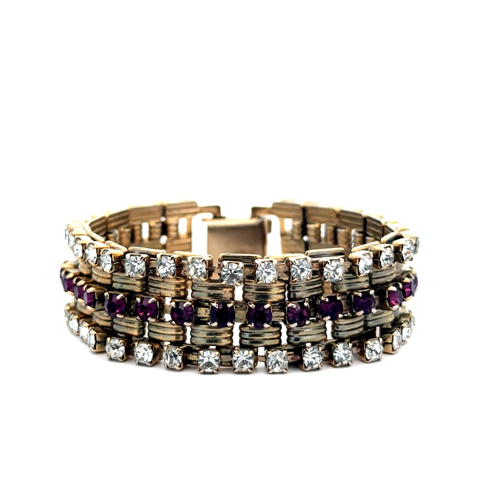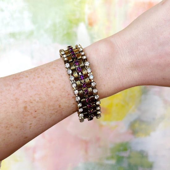 Your outfit is your Aura. Your ensemble is made of energy. You are dressed in Undeniable Alreadyness. And you top it off with this beautiful 1950's amethyst paste rhinestone statement bracelet!