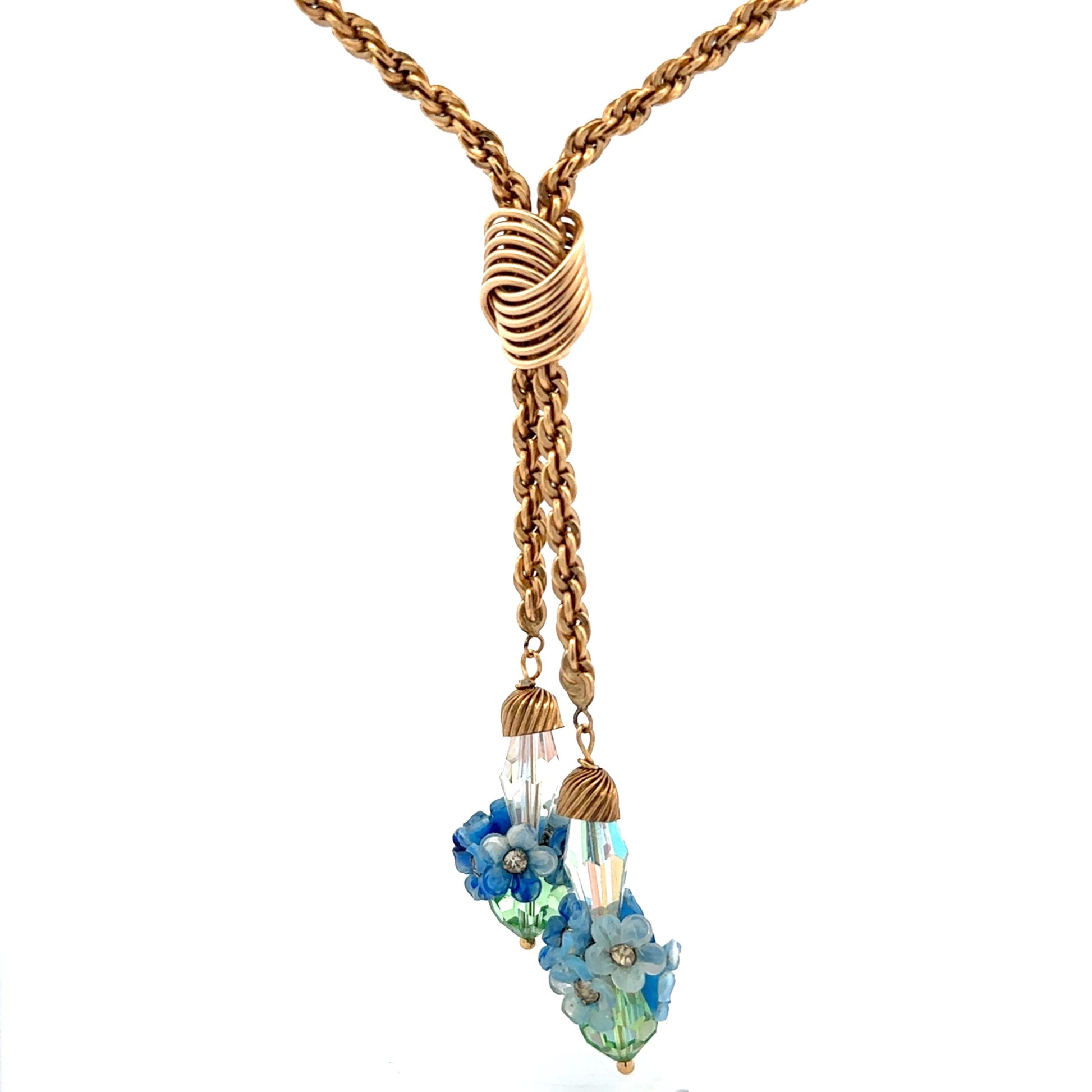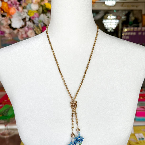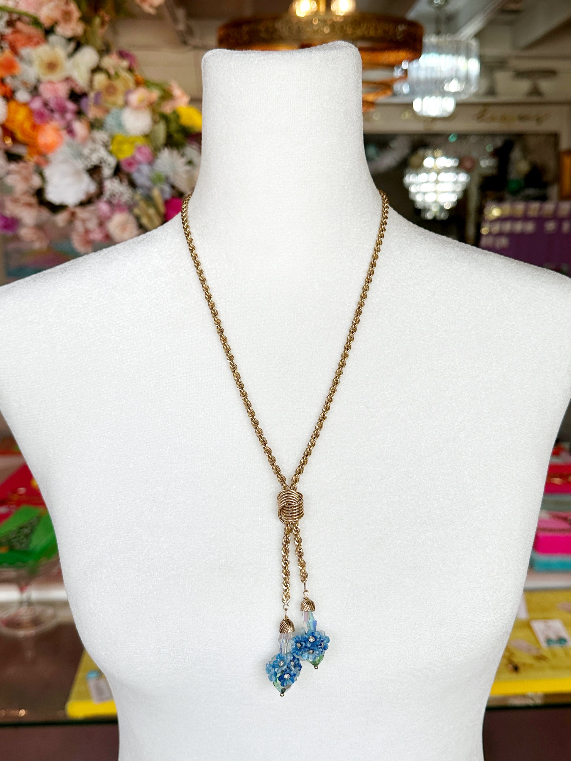 It’s your courage and your audacity to believe in yourself, despite the doubt or darkness around you. It’s in that spirit that you wear this 1960's Gold-fill lariat necklace accented with 1950's blue mix flower drops.