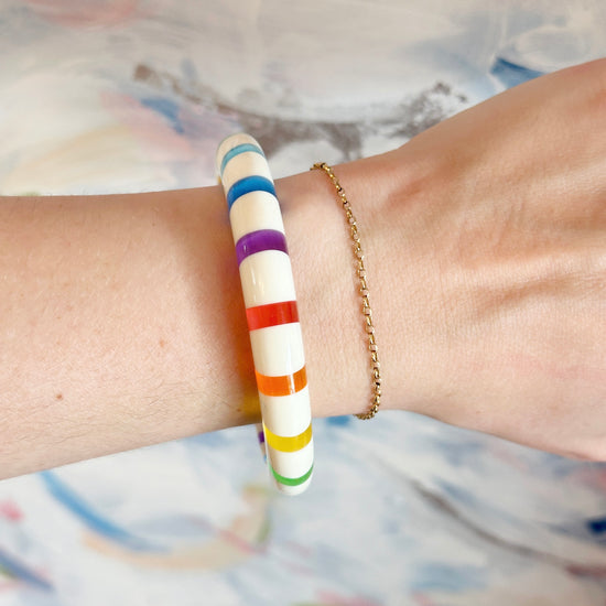 Go bold with color and allow yourself to be fully seen in this multi-colored 1970's lucite bracelet!
