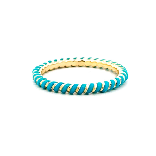 Casual Carats 14k yellow gold and turquoise ceramic twist band. Mix and match these enamel bands to craft a stack that reflects your personal style.