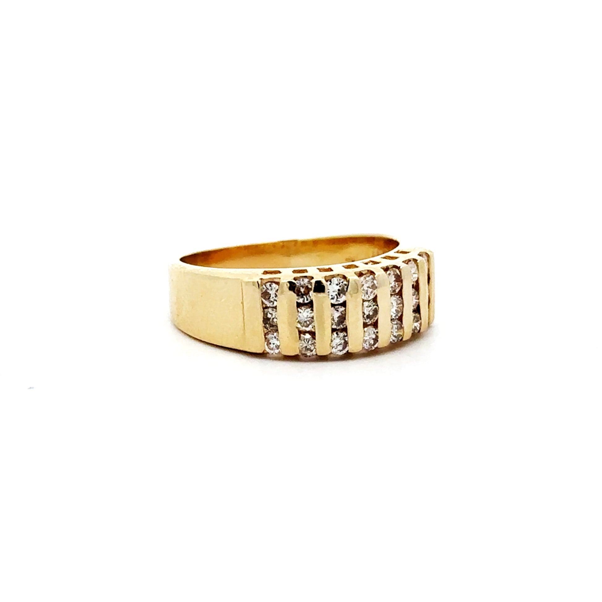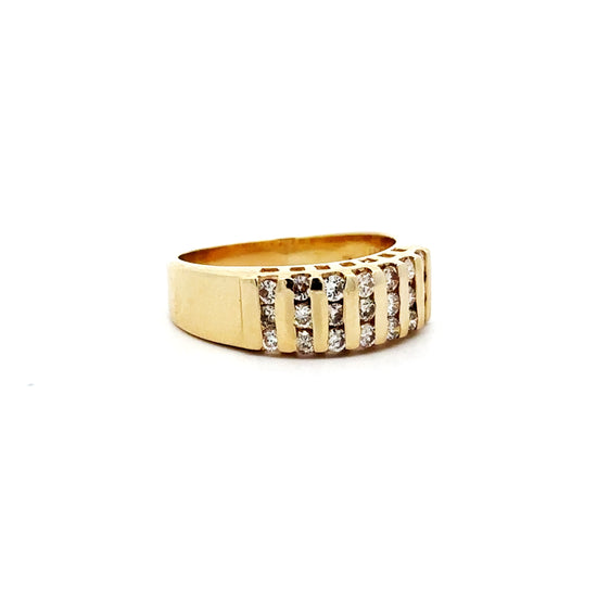 14k yellow gold, 4.1 grams. Natural VS2 clarity, F color channel-set diamonds. 0.315 total carat weight.