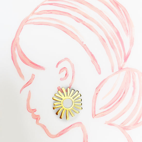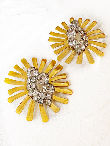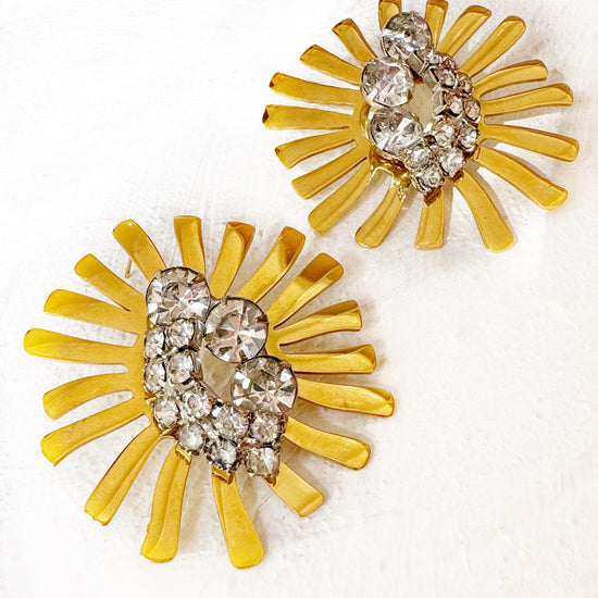 Follow the LIGHT…and the LIGHT HEARTED! Let your accessories be full of bright and abundant PLAY and POSSIBILITY! We have created custom, lightweight, tarnish-free suns as the perfect base for each curated mid-century vintage centerpiece. We created these earrings as an opportunity for you vibrant souls to be BOLD, to be LIGHT, to be YOU and SHINE BRIGHT!