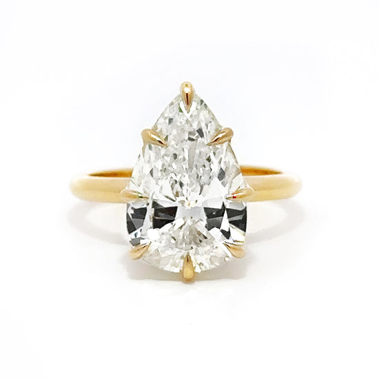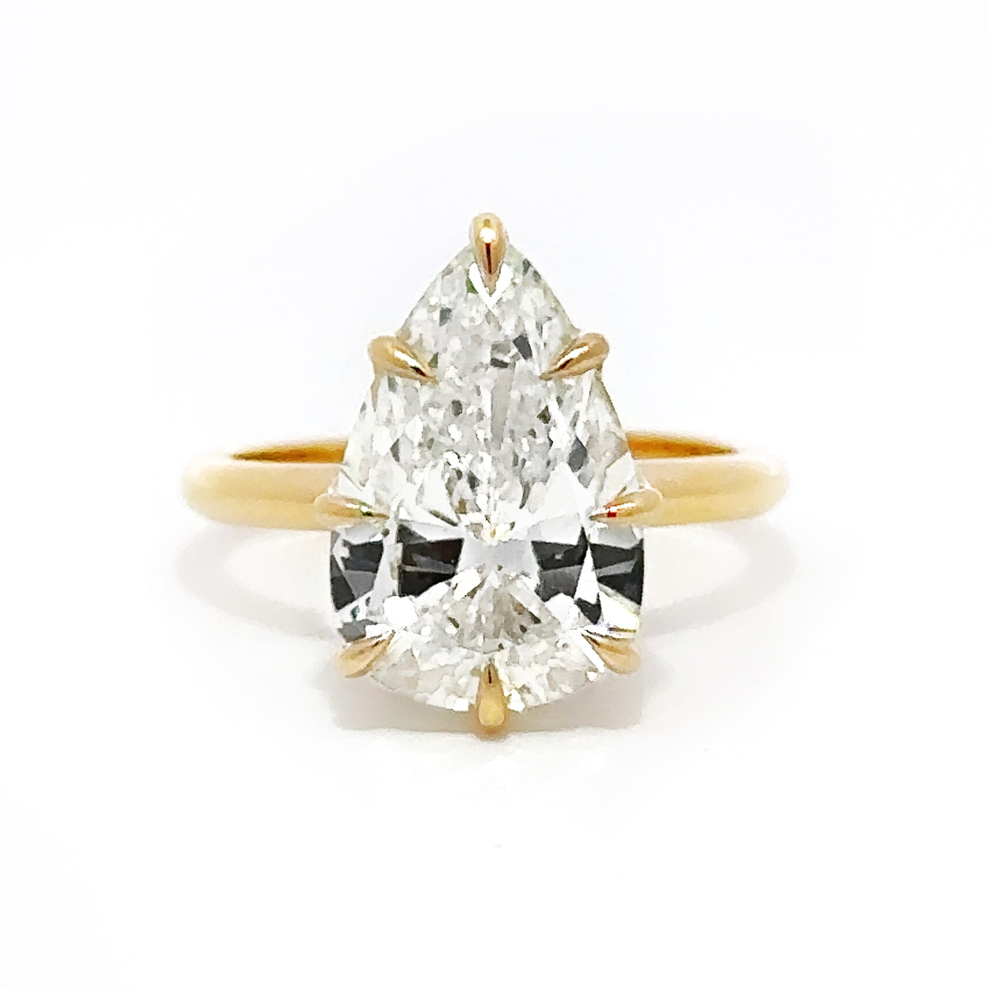 is a truly stunning engagement ring showcasing a breathtaking 3.91 ct pear cut diamond. This exceptional stone measures 13.69 x 8.93 x 5.36 mm and is graded K color, SI2 clarity—yet remains eye clean, radiating brilliance and charm.