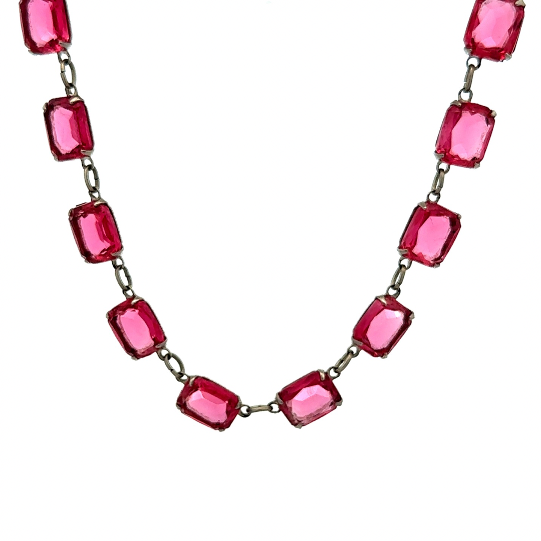 That sparkle in your eye is only matched by the sparkle in this 1920's fuchsia paste rhinestone necklace!