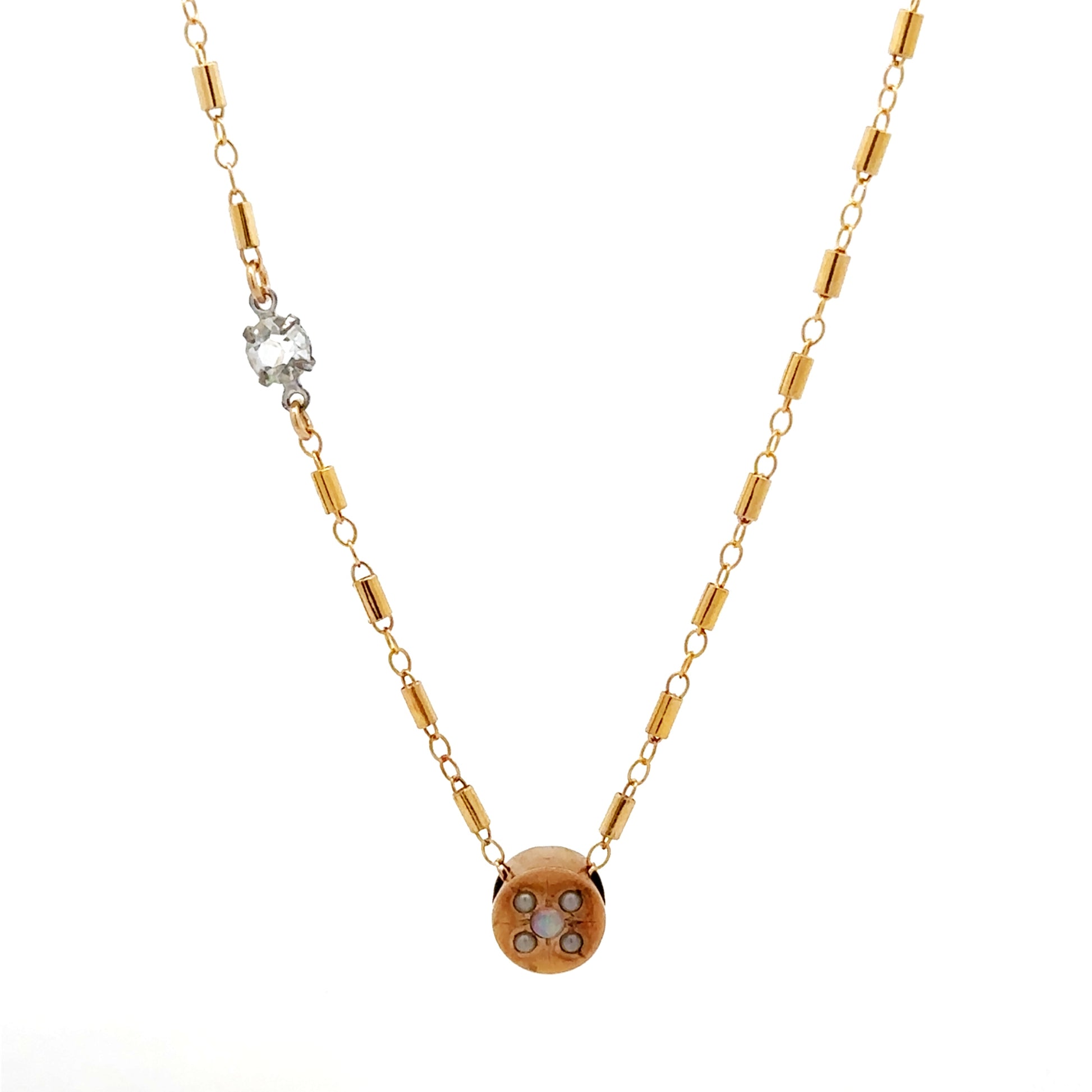 Style is about knowing your SELF! Express yourself differently everyday with this late 1800's Victorian 14k gold 5 opal 14k gold starburst slide charm hung from a 14k gold fill chain!