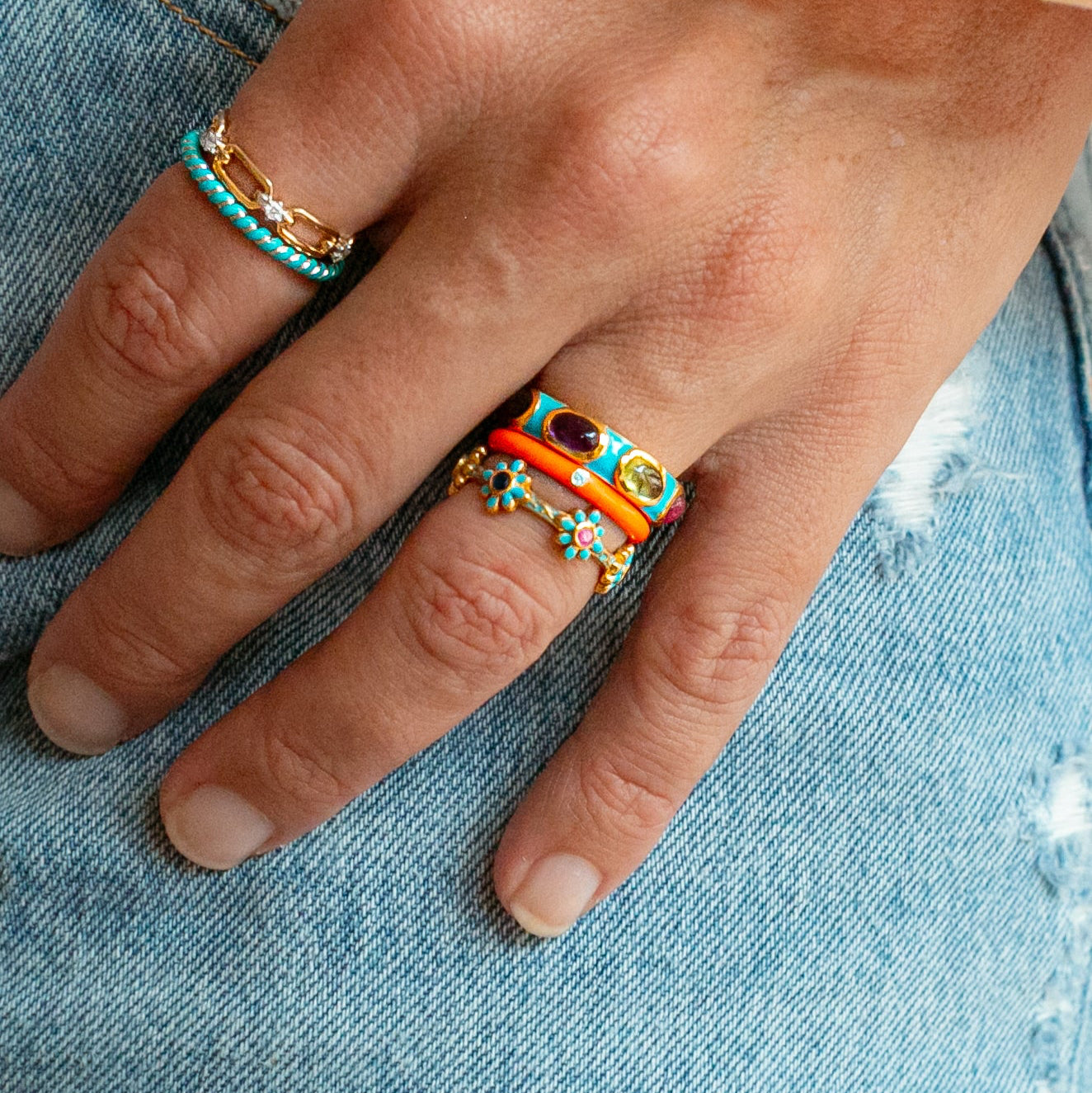 Size: 6.5 immediately available but can easily be made in any size! Just reach out for the size(s) you need. (Hint: enamel bands make the best BFF or Mother/Daughter rings in your own favorite color!)