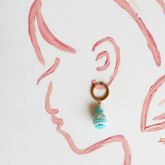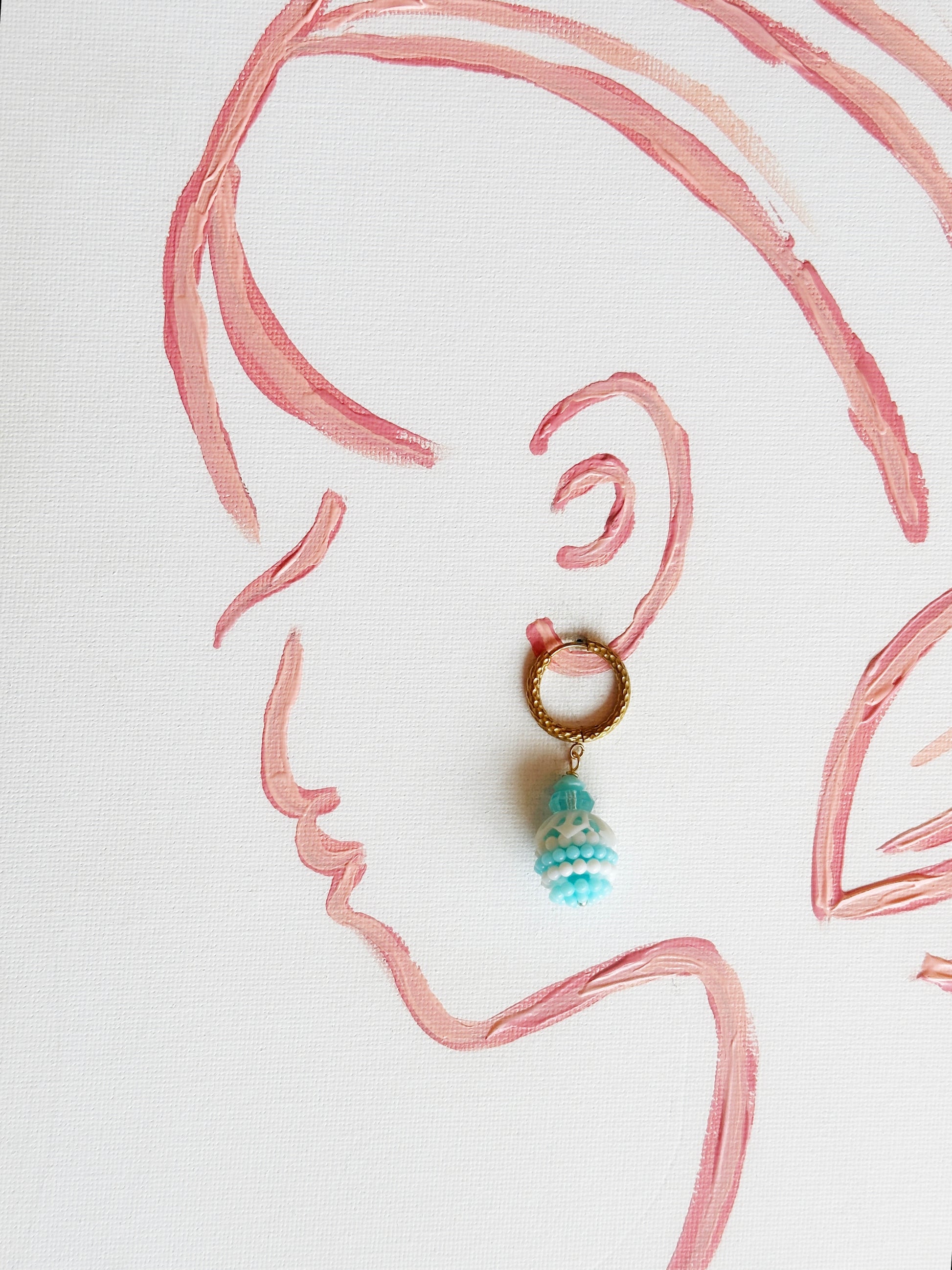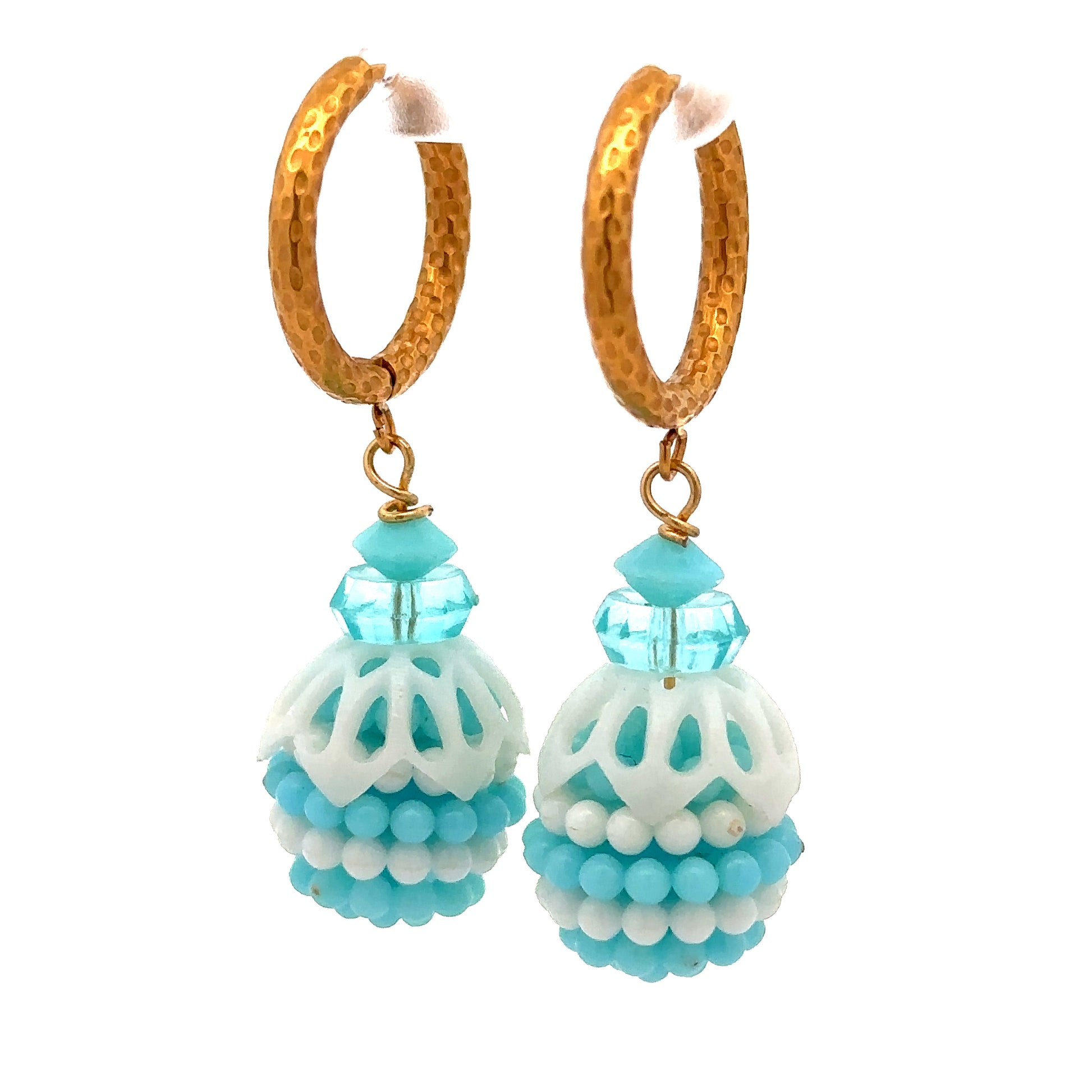 You consider jewelry to be poetry on your person, so you are naturally drawn to this 1960's blue and white beads hung from tarnish free, textured hoops.