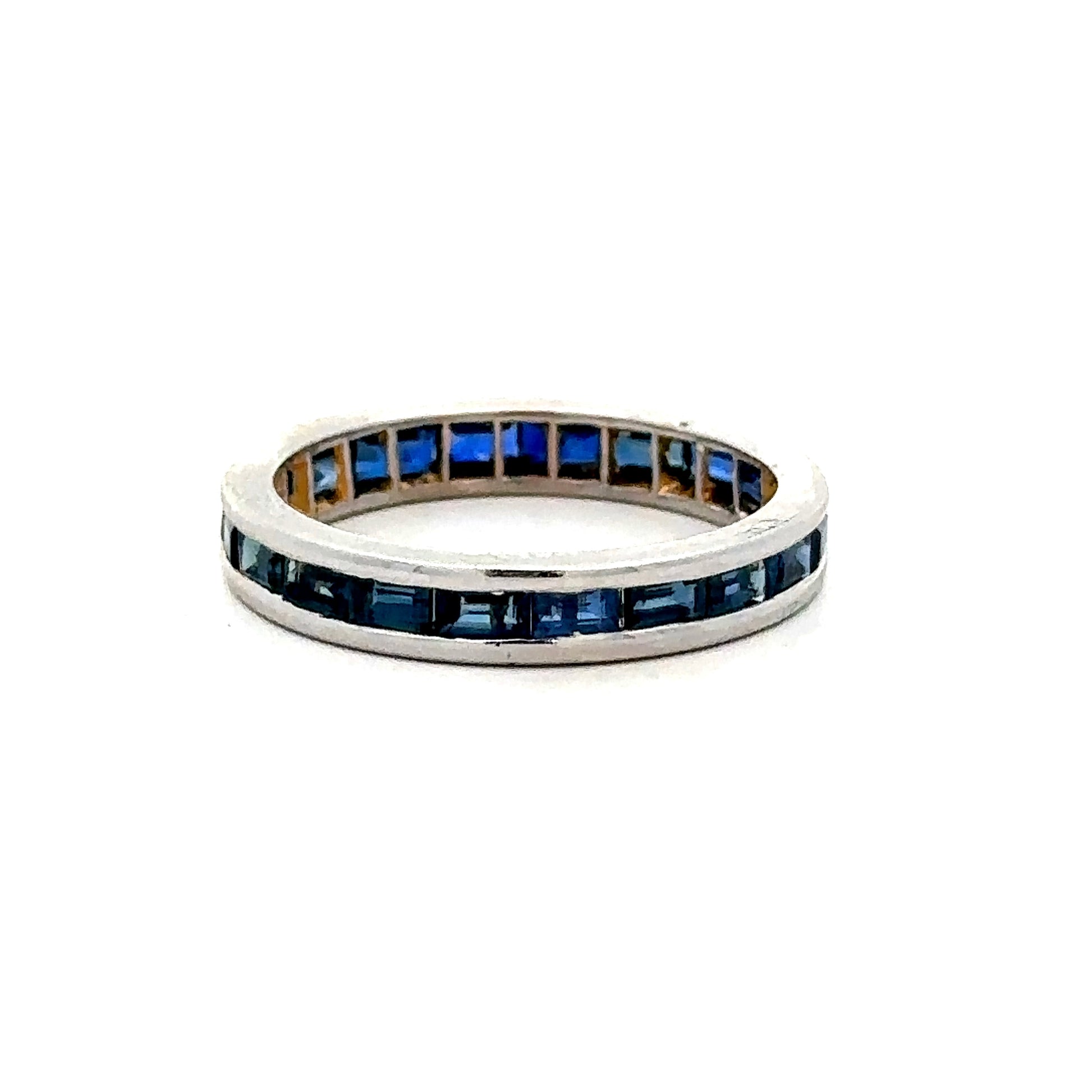 A 1930s Art Deco platinum stackable eternity band featuring natural sapphires totaling approximately 2.7–3 carats. Sleek, geometric, and endlessly vintage—perfect for stacking or wearing solo!
