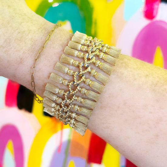Magic is your middle name, and your jewelry reflects your life alive with wonder and curiosity! This 1960's gold tassel bracelet is alive on every side!