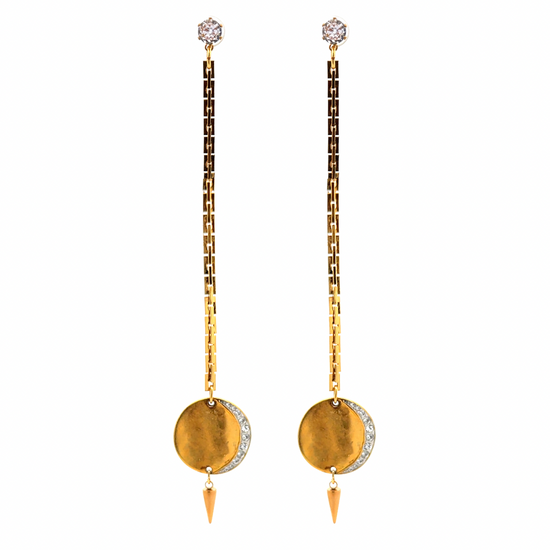 Your energy is contagious, bringing so much light and life into the world! You are the perfect soul to wear these 1960's gold toned crescents hung from tarnish-free chain and accented with gold spike charms!
