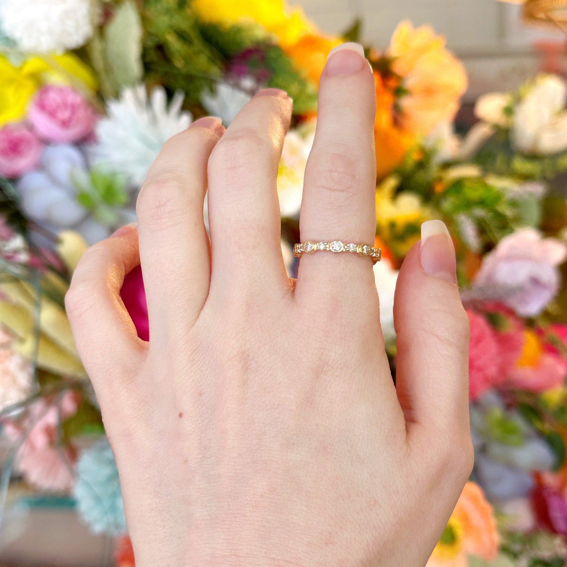 "Ollie" in her classic form consists of natural 18 diamonds 0.54 ctw. diamonds set in 14k yellow gold. A perfect addition to your stack or a statement all on its own!