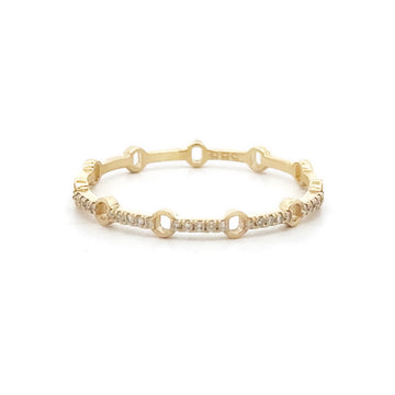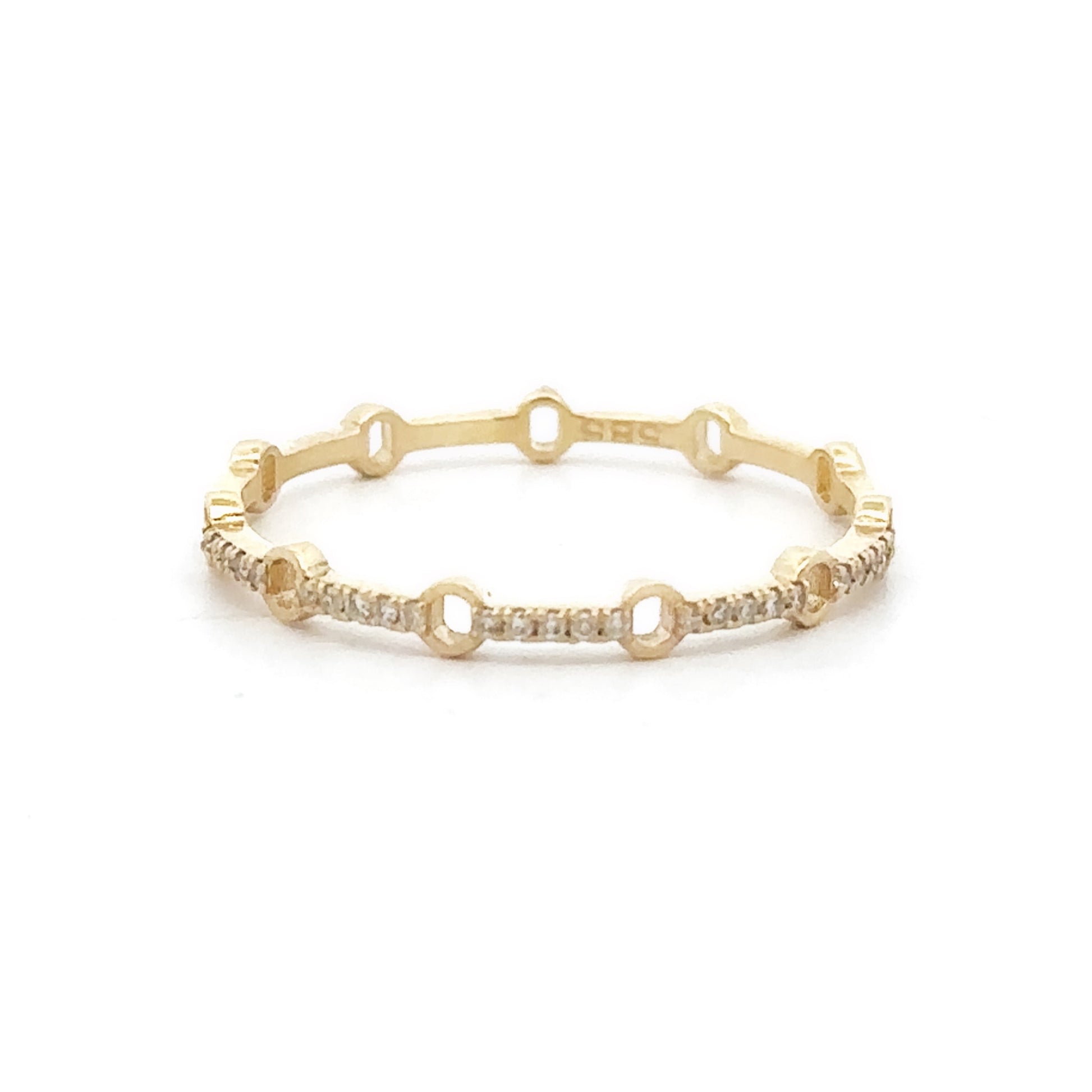 "Regan" in her classic form is a 14k yellow gold ring (0.90 grams) featuring white diamonds totaling 0.060 carats (F color, SI1 clarity). Tiny, sparkling, and effortlessly chic—perfect for stacking or wearing alone!