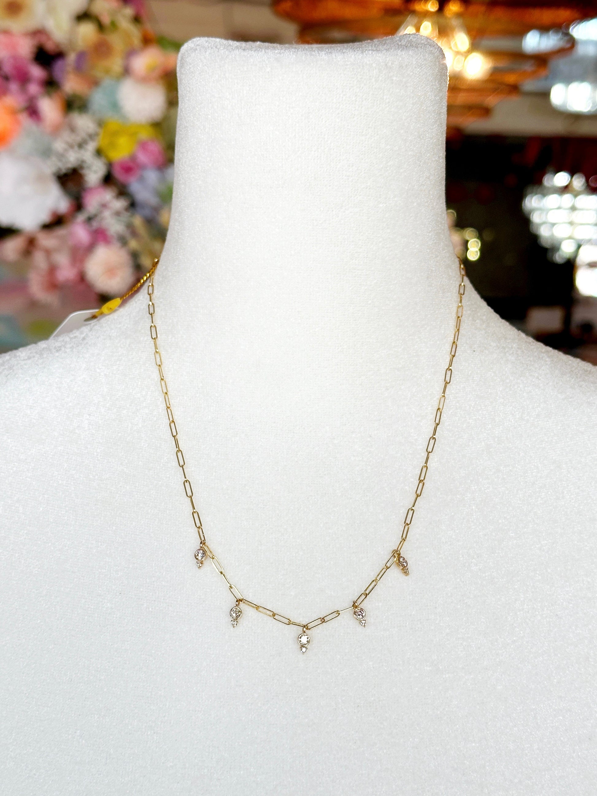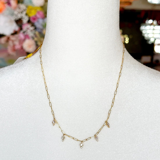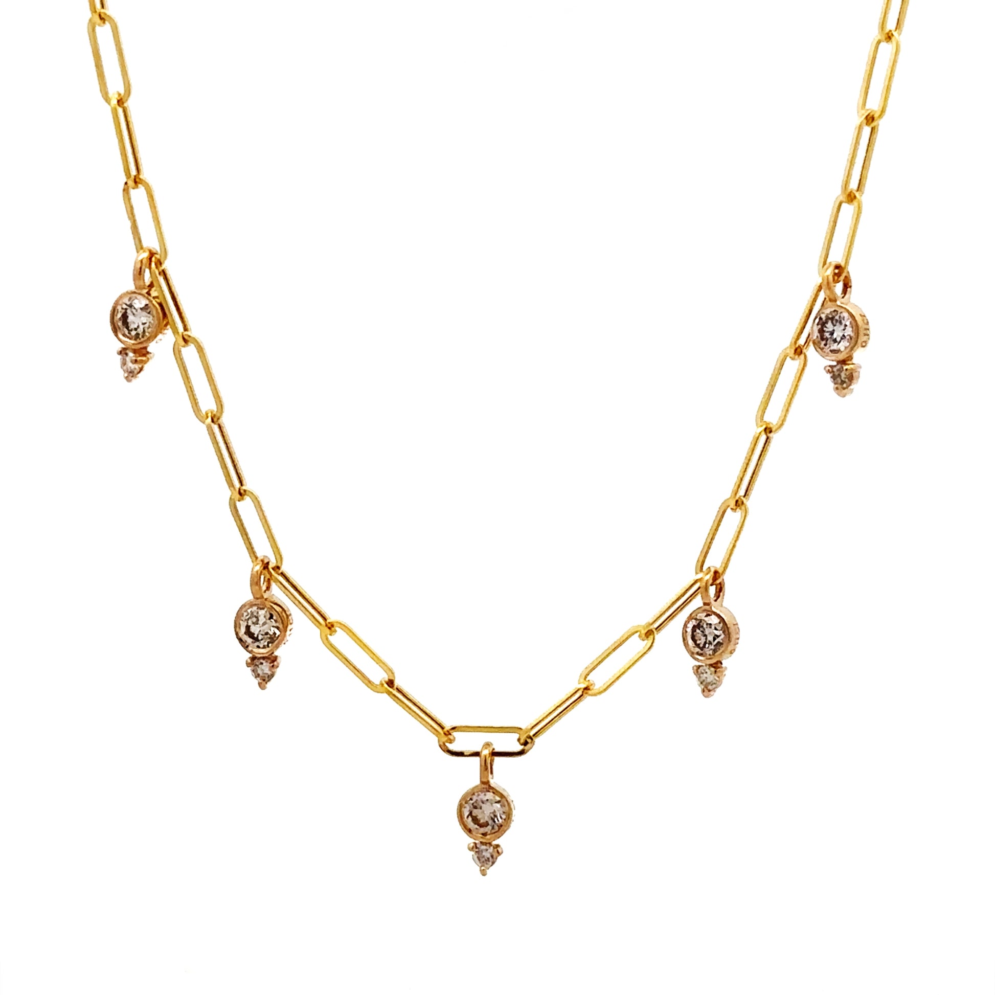 14k yellow gold & diamond necklace featuring approximately 0.55 ct round diamonds.