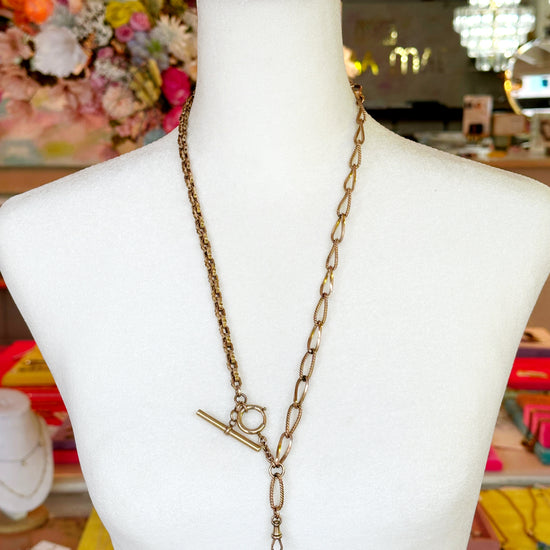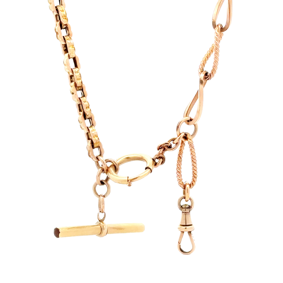 Victorian Era watch chain necklace. 14k yellow gold filled.
