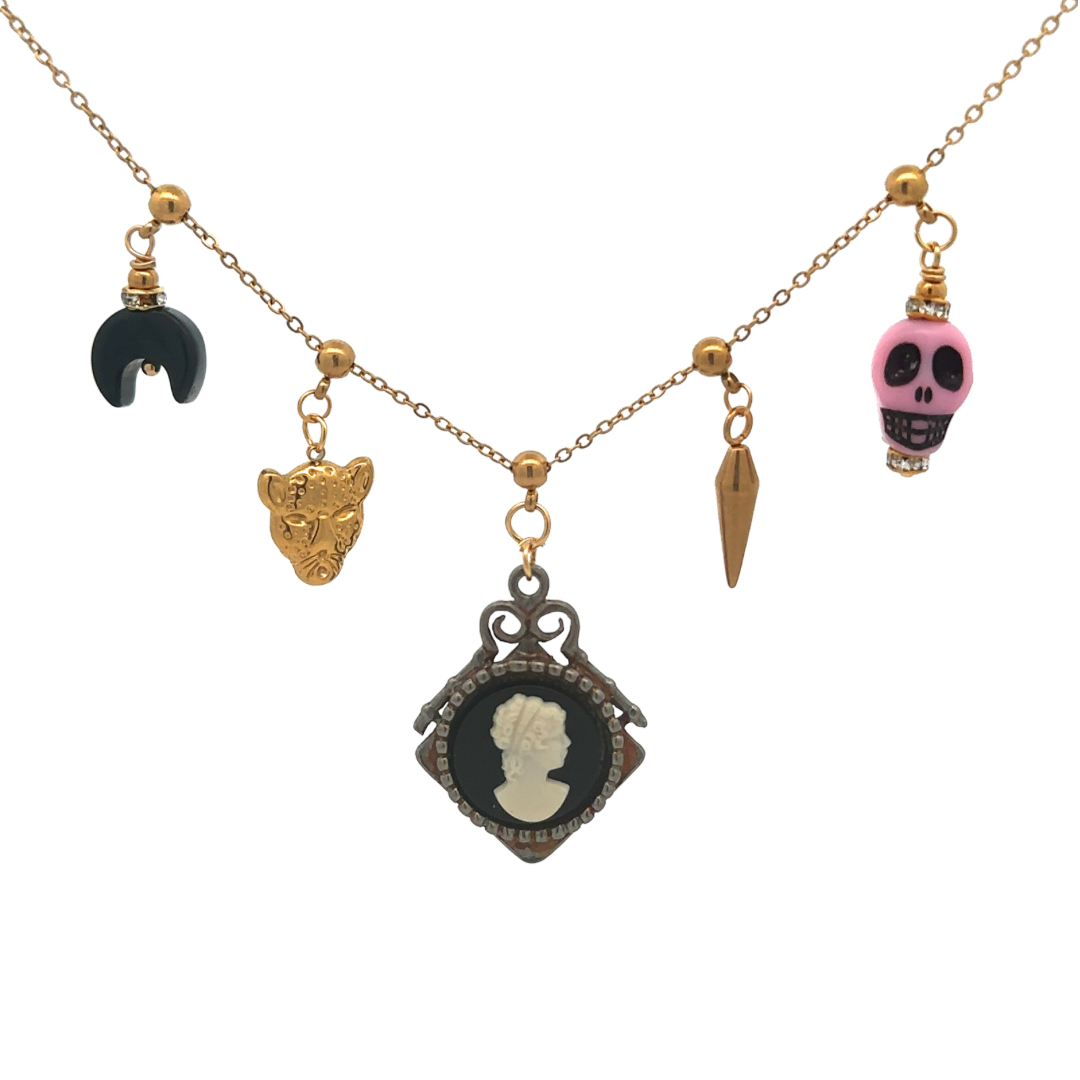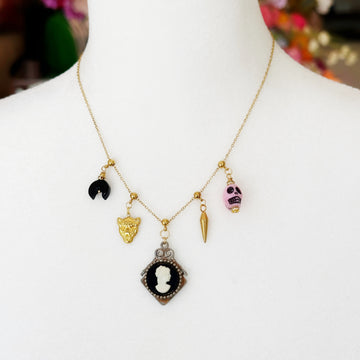 You consider jewelry to be poetry on your person, so you are naturally drawn to this vintage charm necklaces featuring charms from the late 1800's to the 1950's. Adjustable Stations.