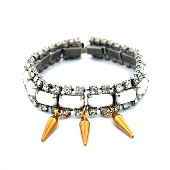1960's rhinestone paste and white bracelet accented with gold spikes!