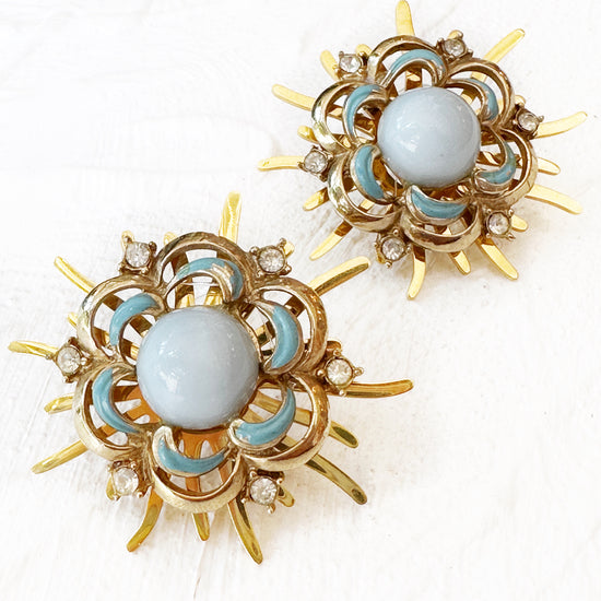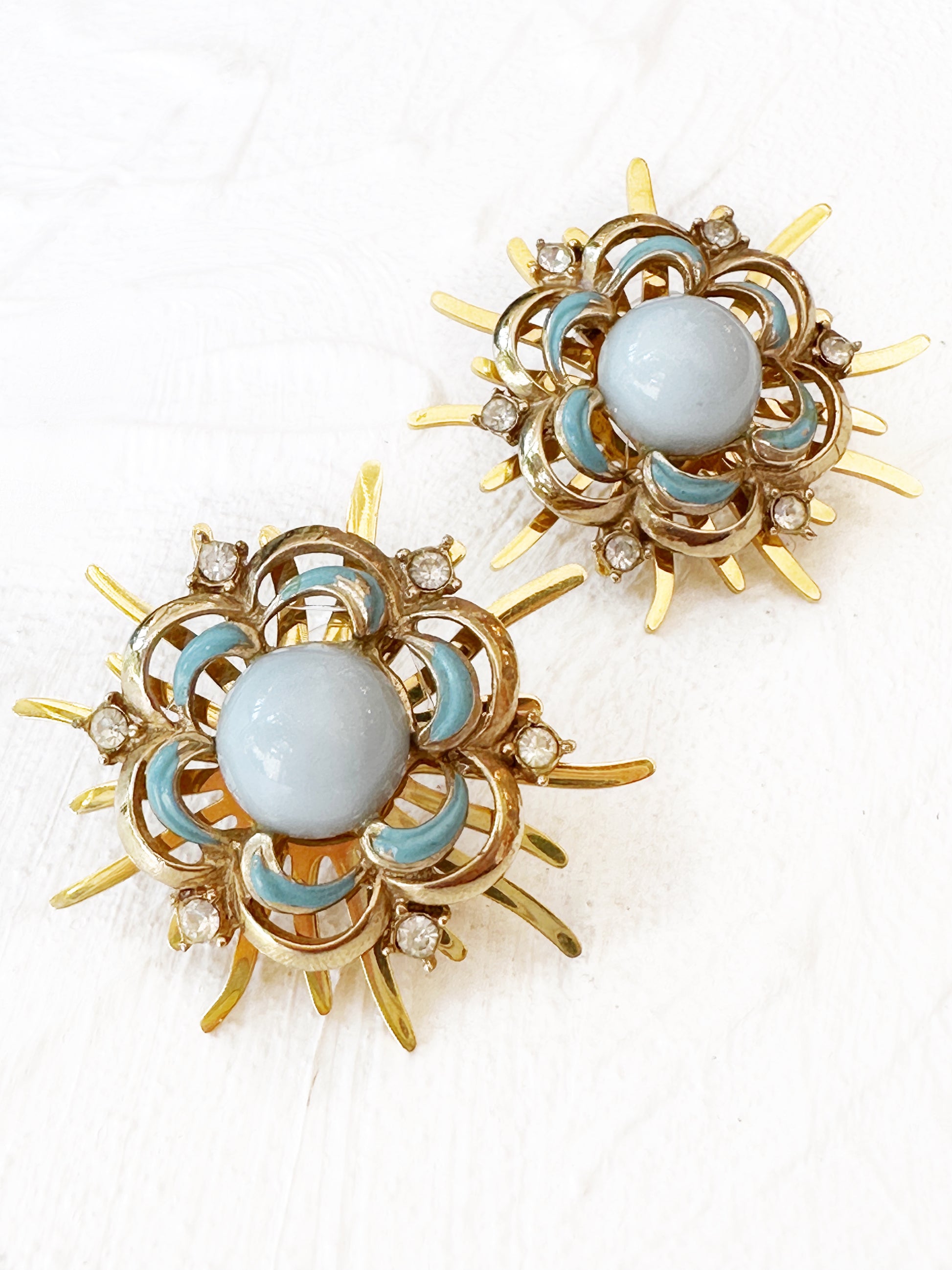 If you’re like us, sunshine on your shoulders makes you happy! We have created custom, lightweight, tarnish-free rays of sunshine as the perfect base for each curated mid-century vintage centerpiece! Let your light shine through with these one-of-a-kind rays of light!