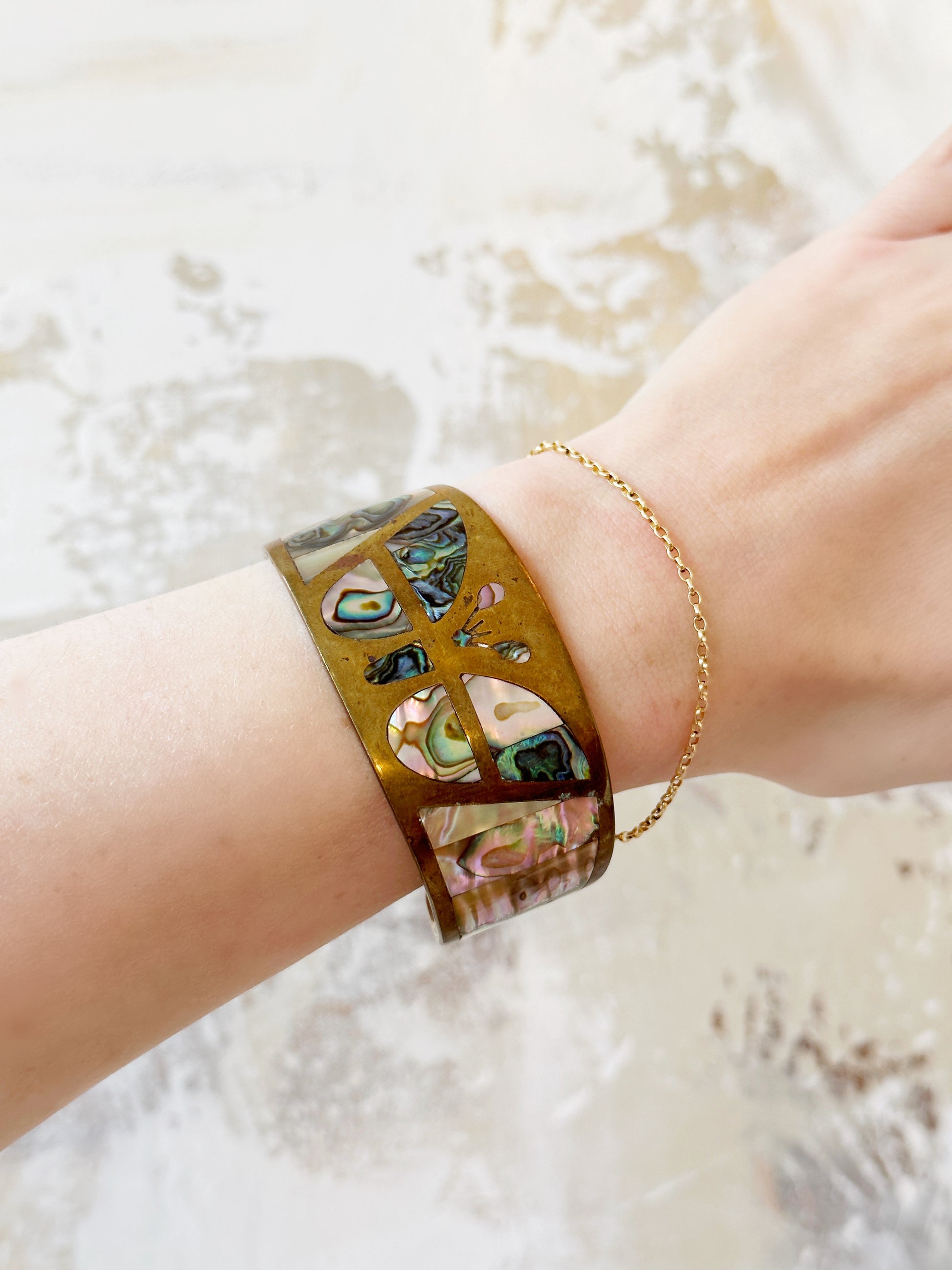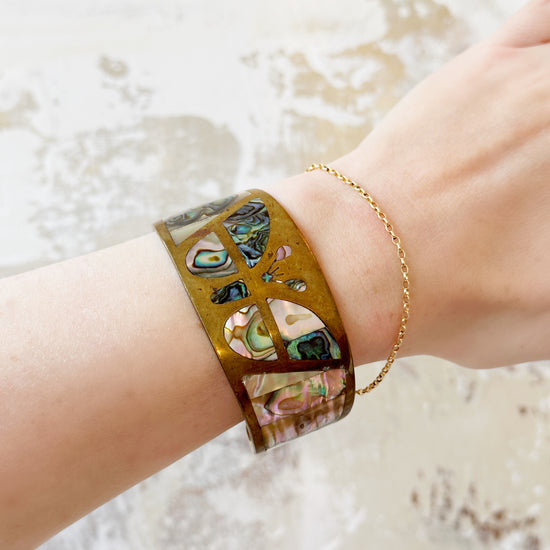 You love to milk every magical moment in your life, which is why you love this Mexican silver bracelet with brass overlay accented with genuine abalone shell.