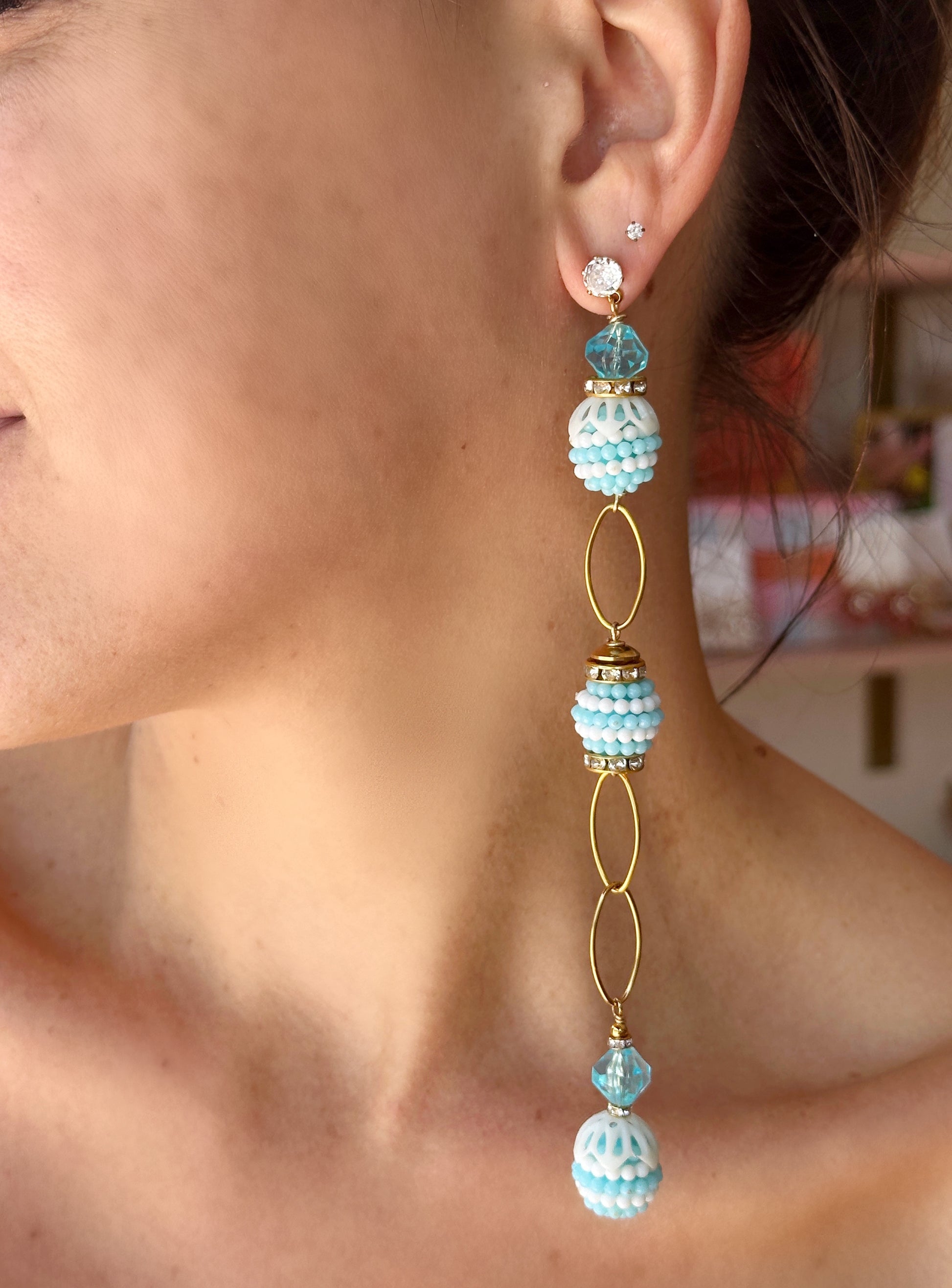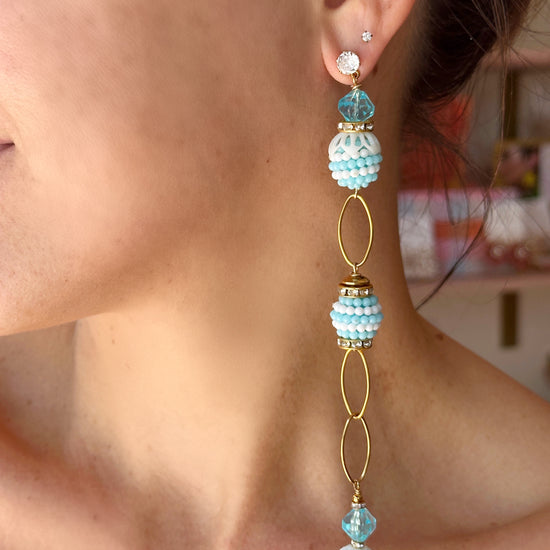 You love to milk every magical moment in your life, which is why you love these vintage white and blue beads accented with gold oval links!