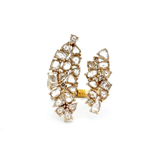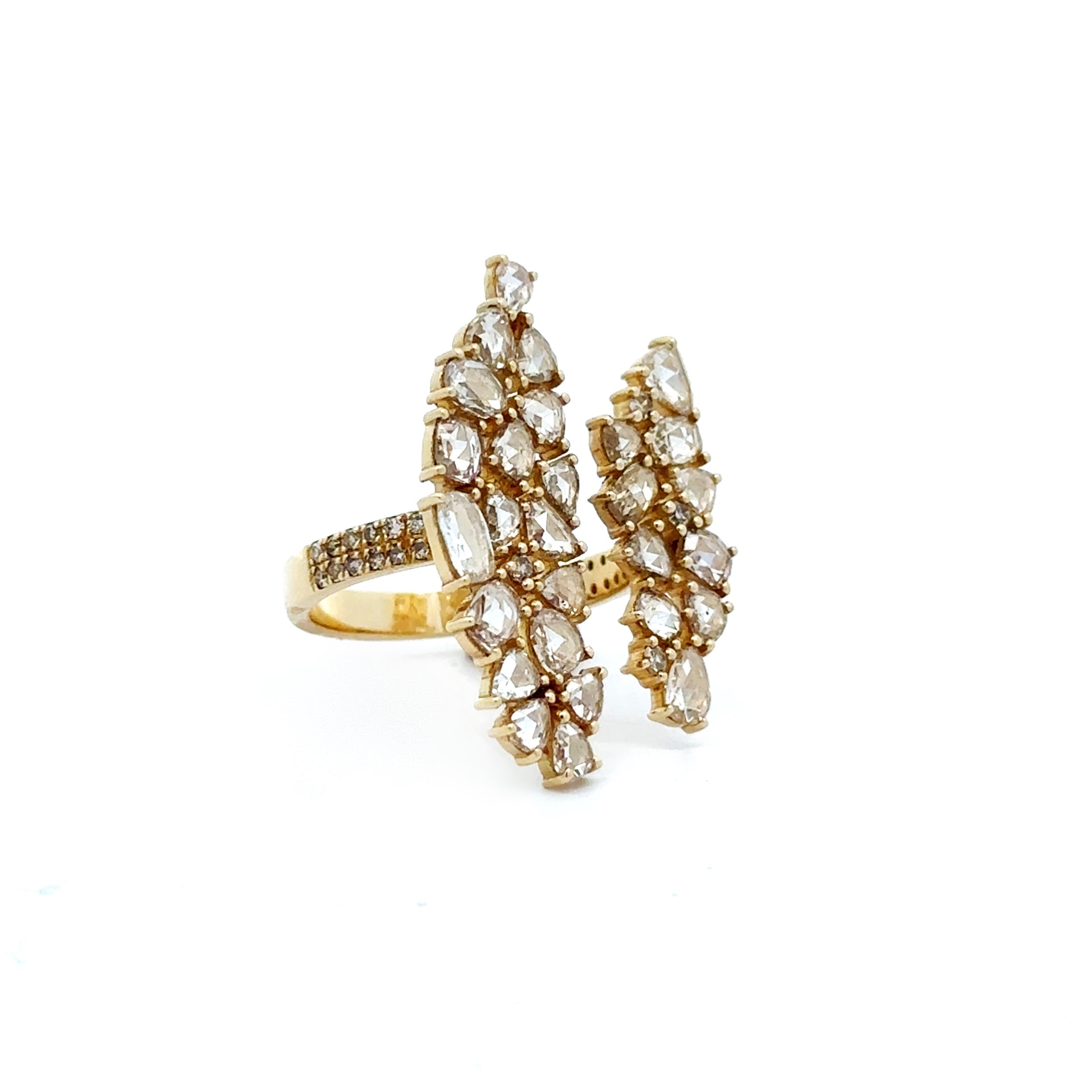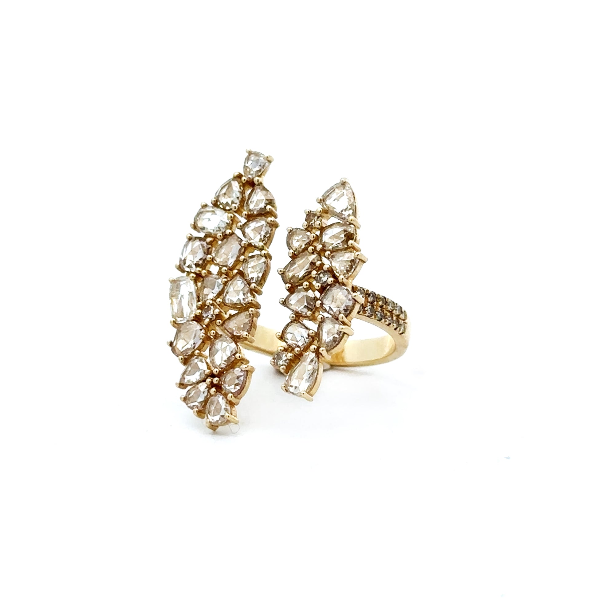A 14k yellow gold ring (5.03 grams) featuring 28 rose-cut diamonds totaling 2.75 carats and 33 round diamonds totaling 0.25 carats. A sparkling cocktail of diamonds that’s impossible not to admire!