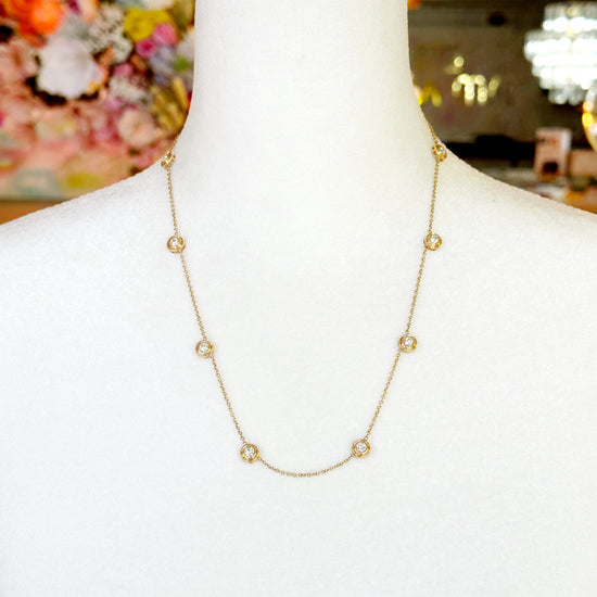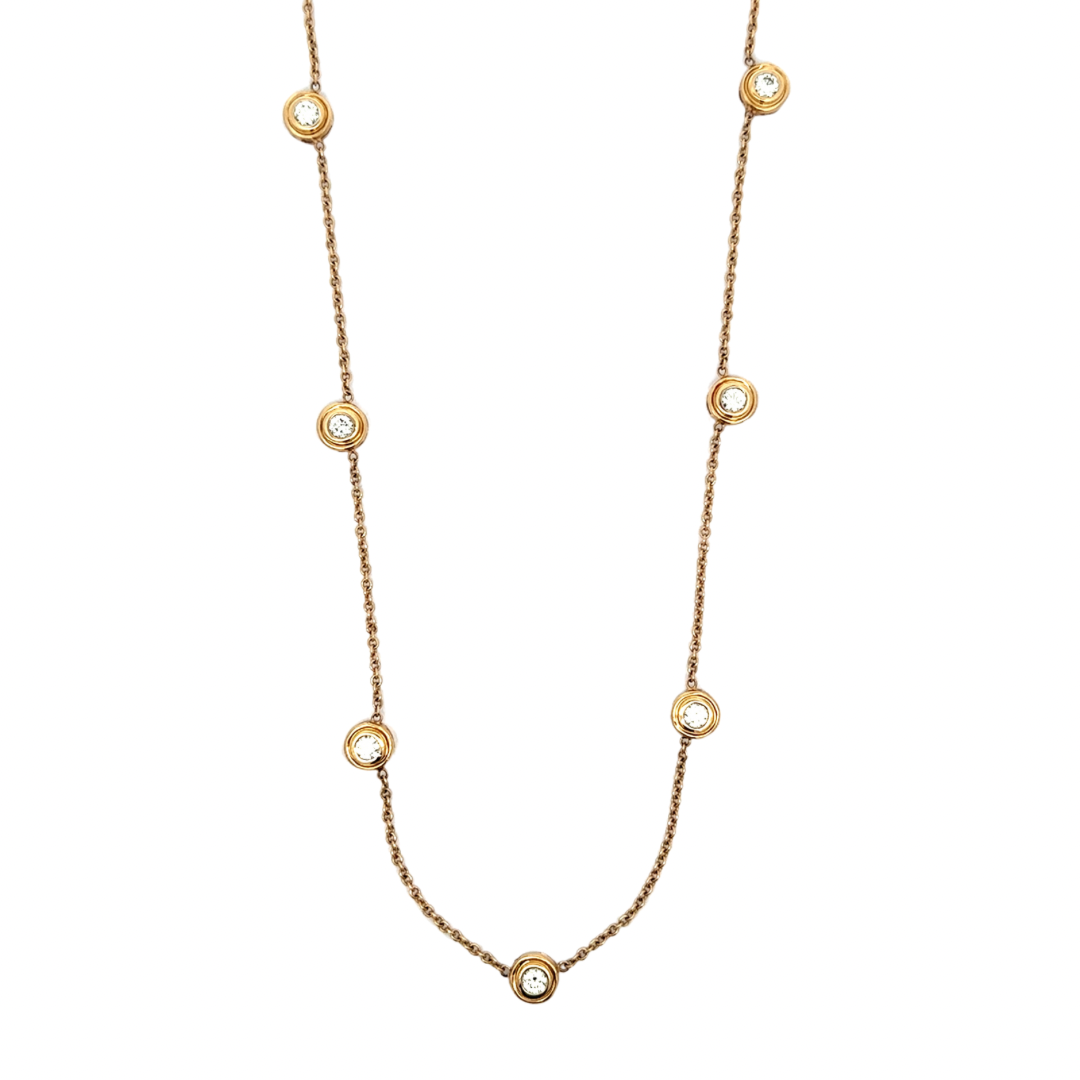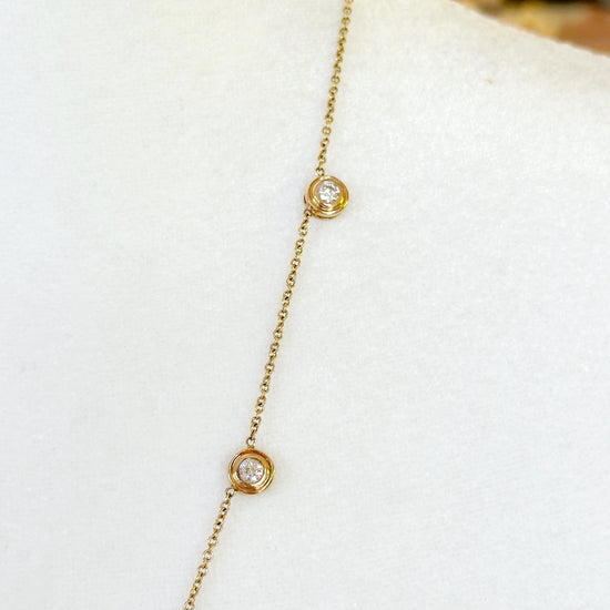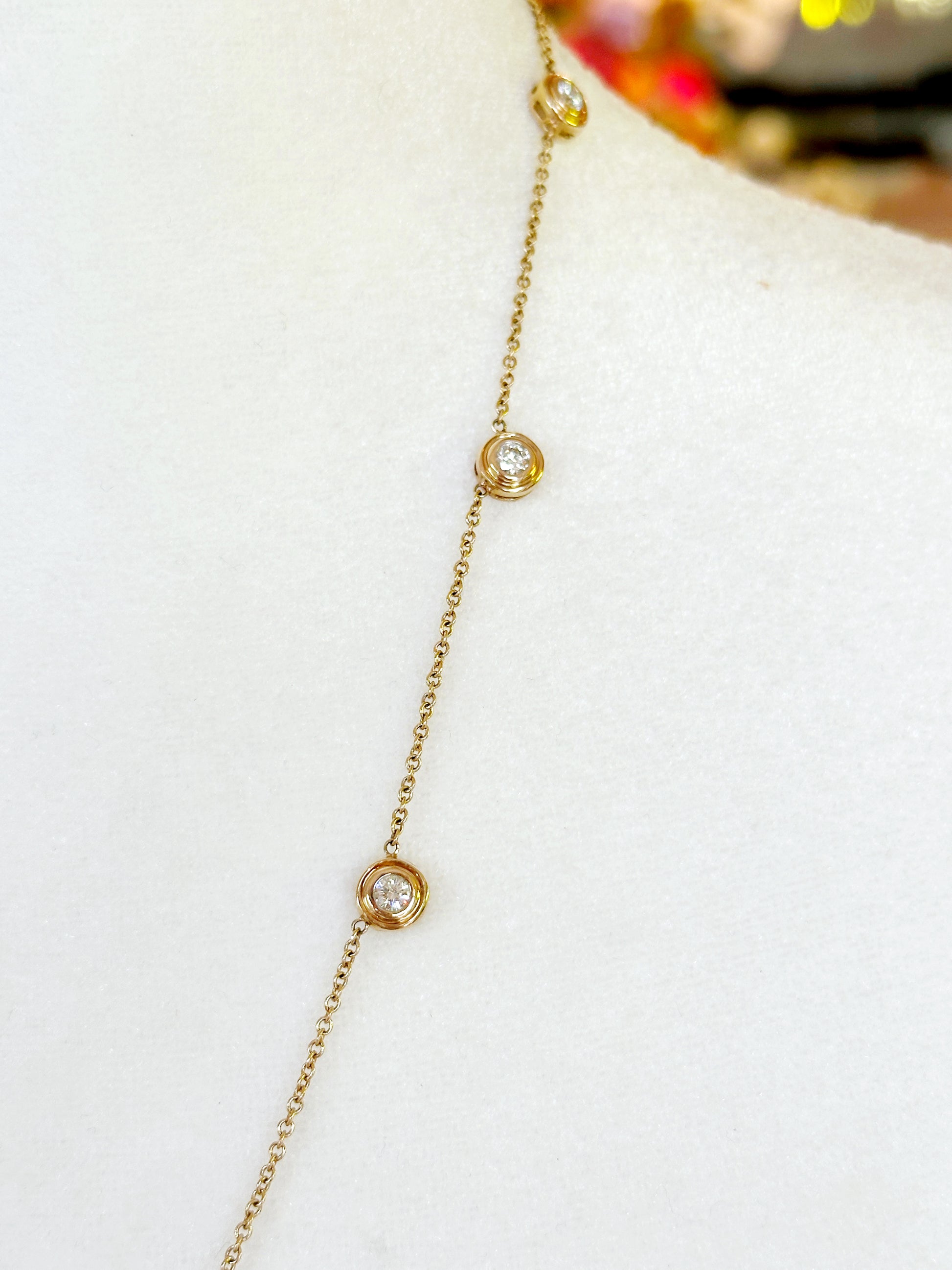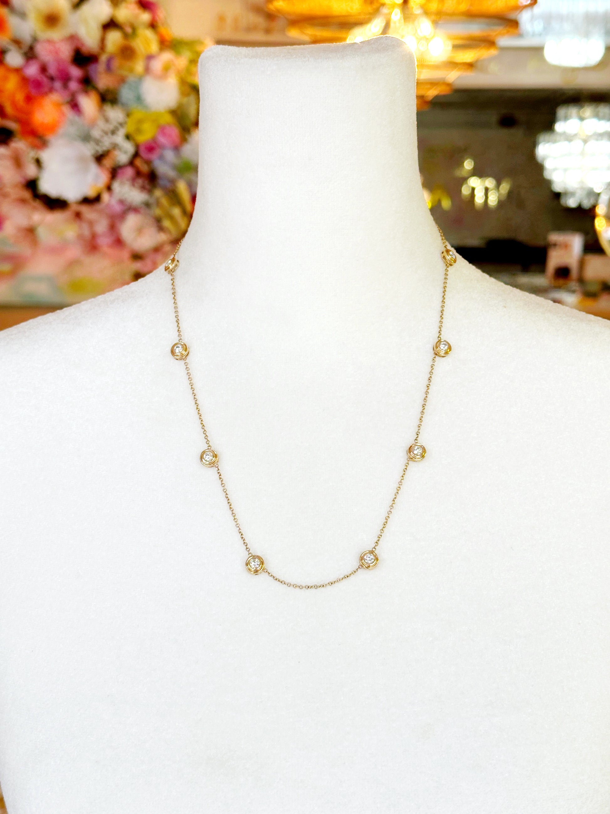 20 inch 9 bezel set diamond station necklace. 1.35 ctw si1 G/H. 4.77 grams