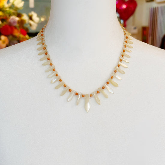 Your outfit is your Aura. Your ensemble is made of energy. You are dressed in Undeniable Alreadyness. And you top it off with this beautiful 1960's beaded shell necklace, which fosters love, wealth and protection.