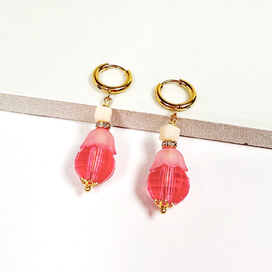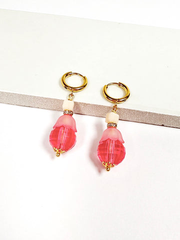 Your quiet courage becomes you. You quietly cultivate your soul AND courageously create your reality. Just like these vintage pink glass beads and flowers caps hung from tarnish free hoops.